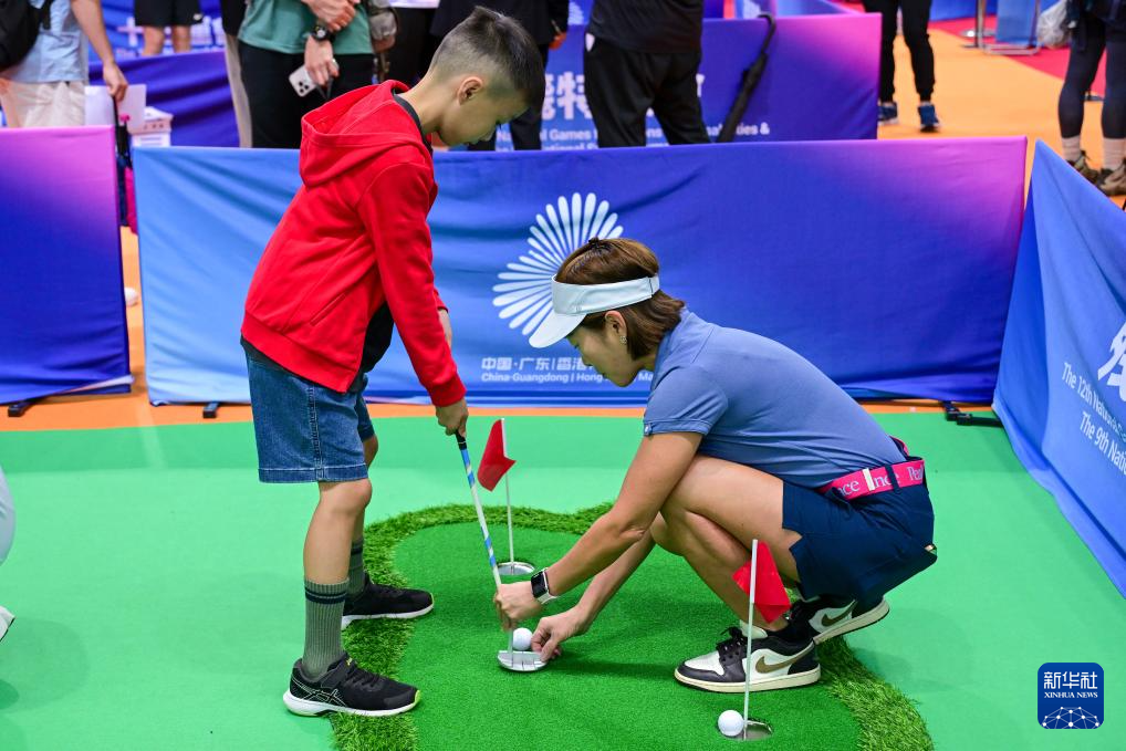 8月2日,一名儿童体验十五运会和残特奥会的部分项目。