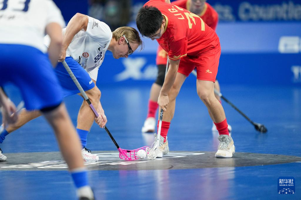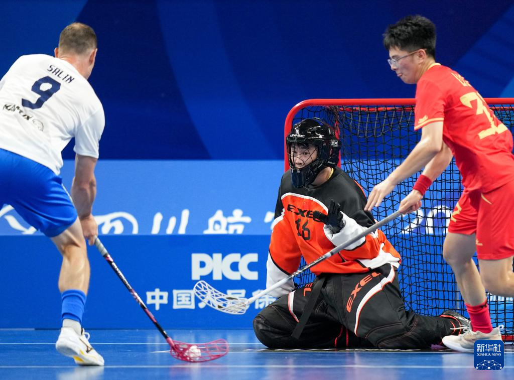 当日,在成都世运会软式曲棍球男子B组预赛中,中国队对阵芬兰队。