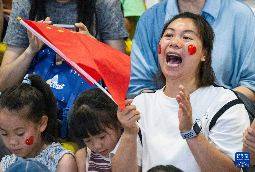 8月7日,中国队选手黄昱硕(左)在比赛中进攻。