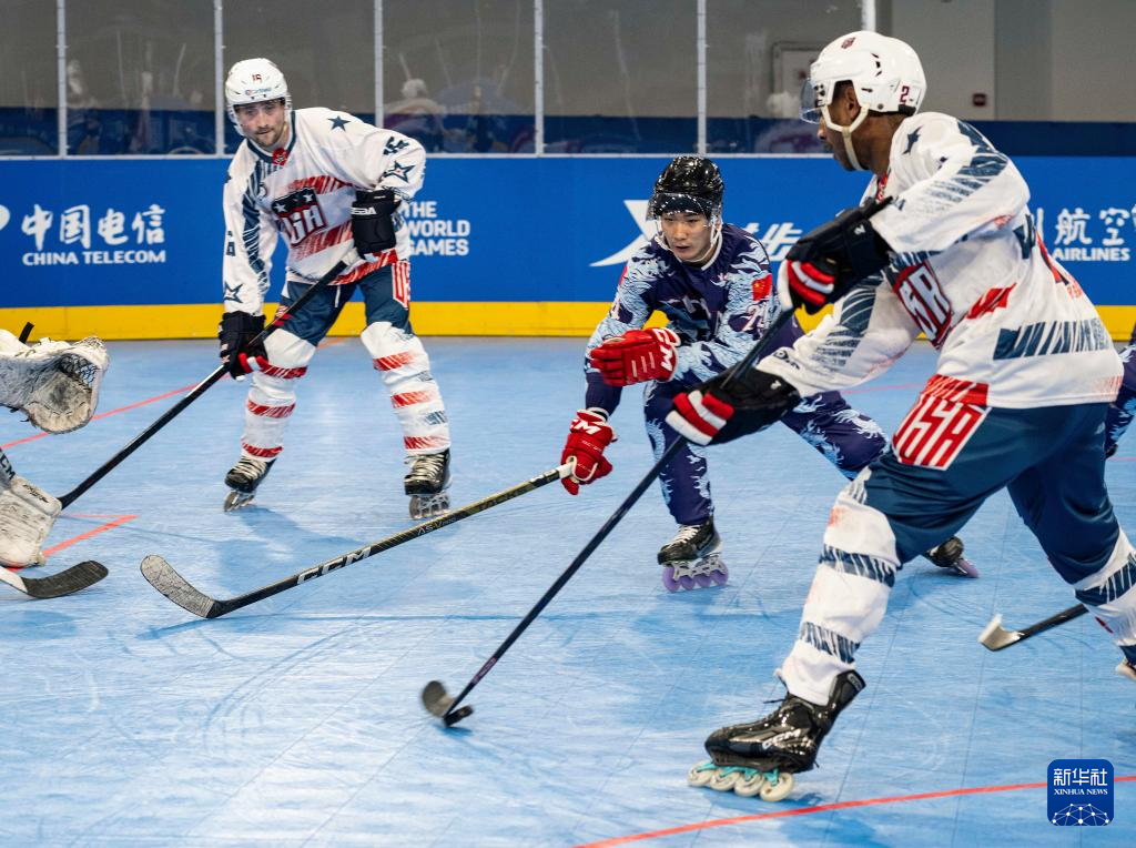 当日,在成都世运会单排轮滑球男子A组预赛中,中国队1比20不敌美国队。