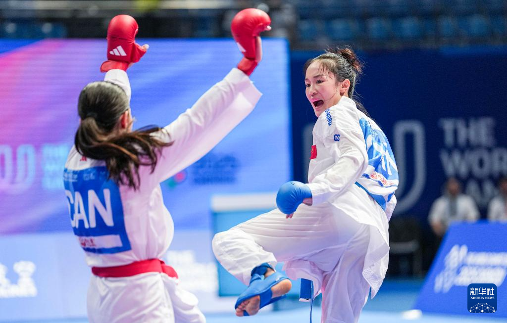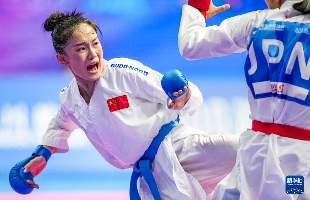 当日,2025年成都世运会空手道女子组手55公斤级小组赛在简阳文体中心体育馆举行。