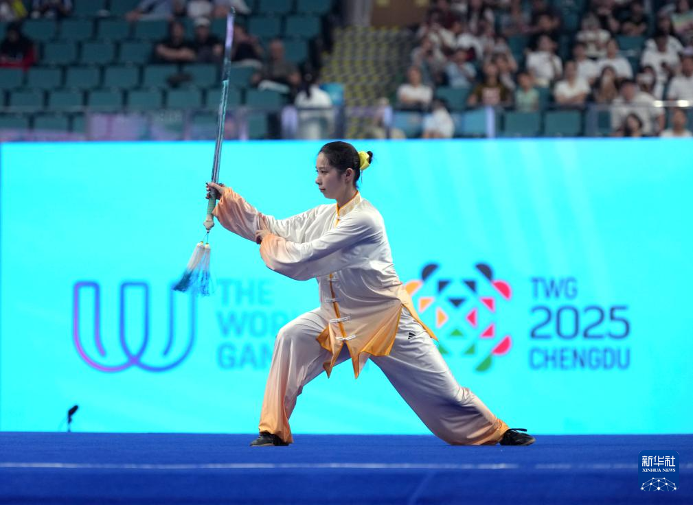 当日,在成都世运会武术项目女子太极拳-太极剑决赛中,中国选手卢卓灵夺得冠军。这是中国体育代表团在成都世运会上的首枚金牌。