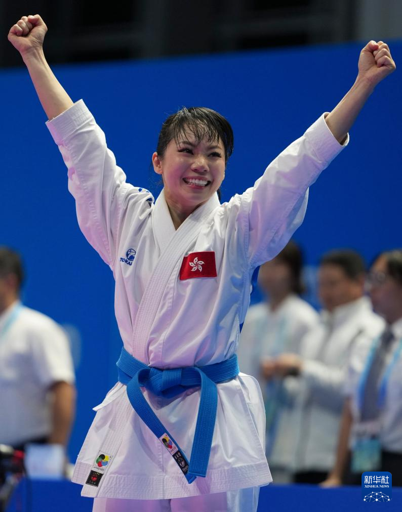 8月8日,冠军中国香港选手刘慕裳在决赛金牌赛中。