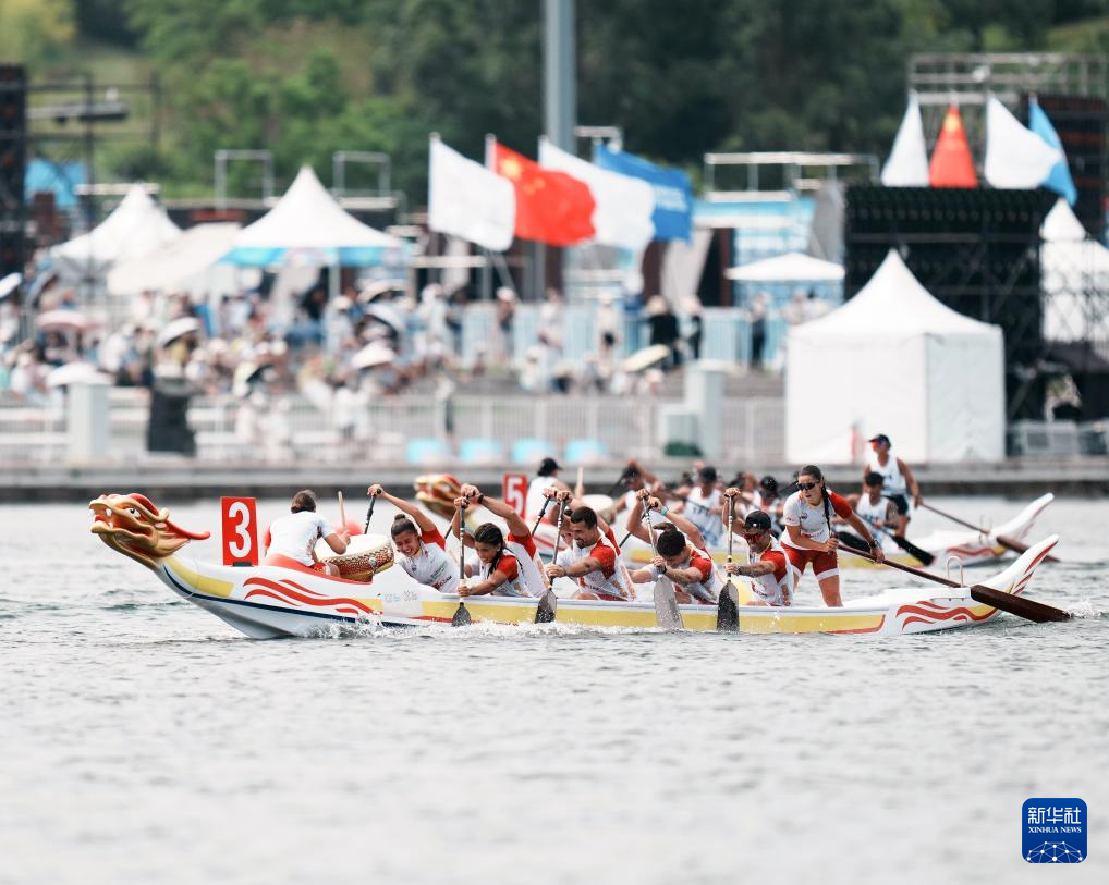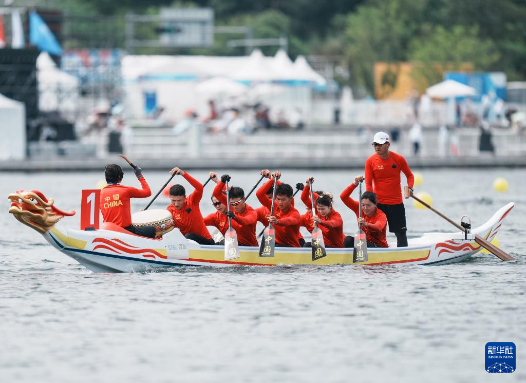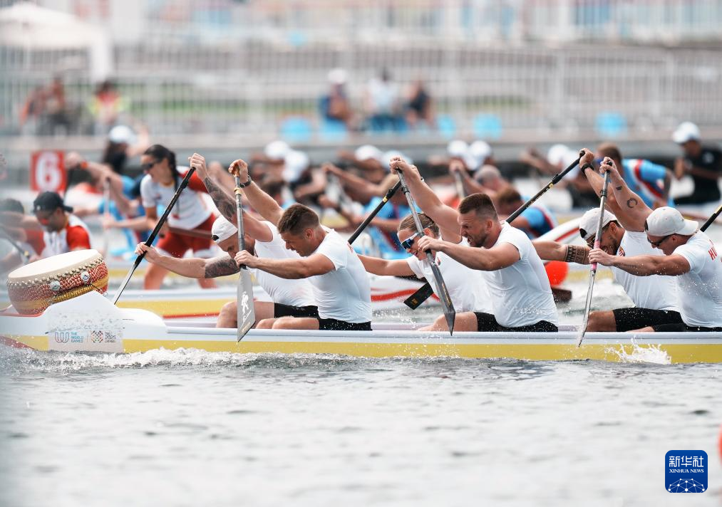 当日,2025年成都世运会龙舟8人座公开组500米半决赛在成都市兴隆湖湖滨赛场举行。