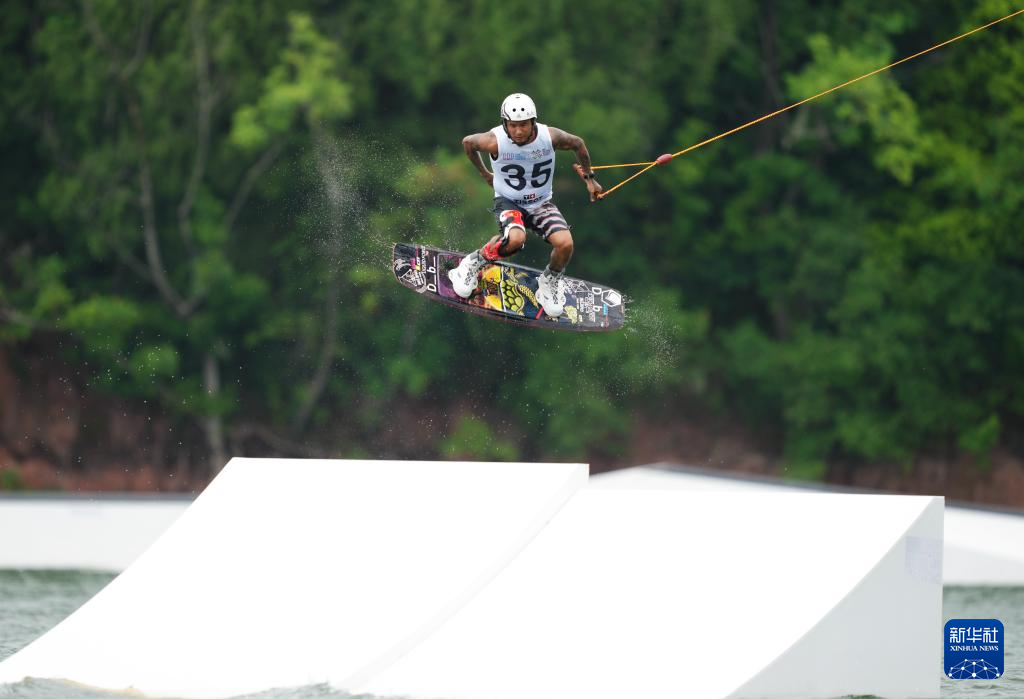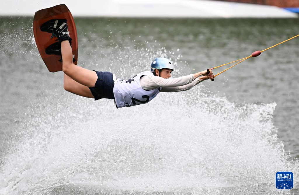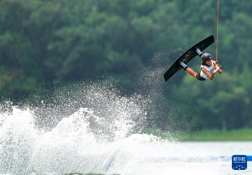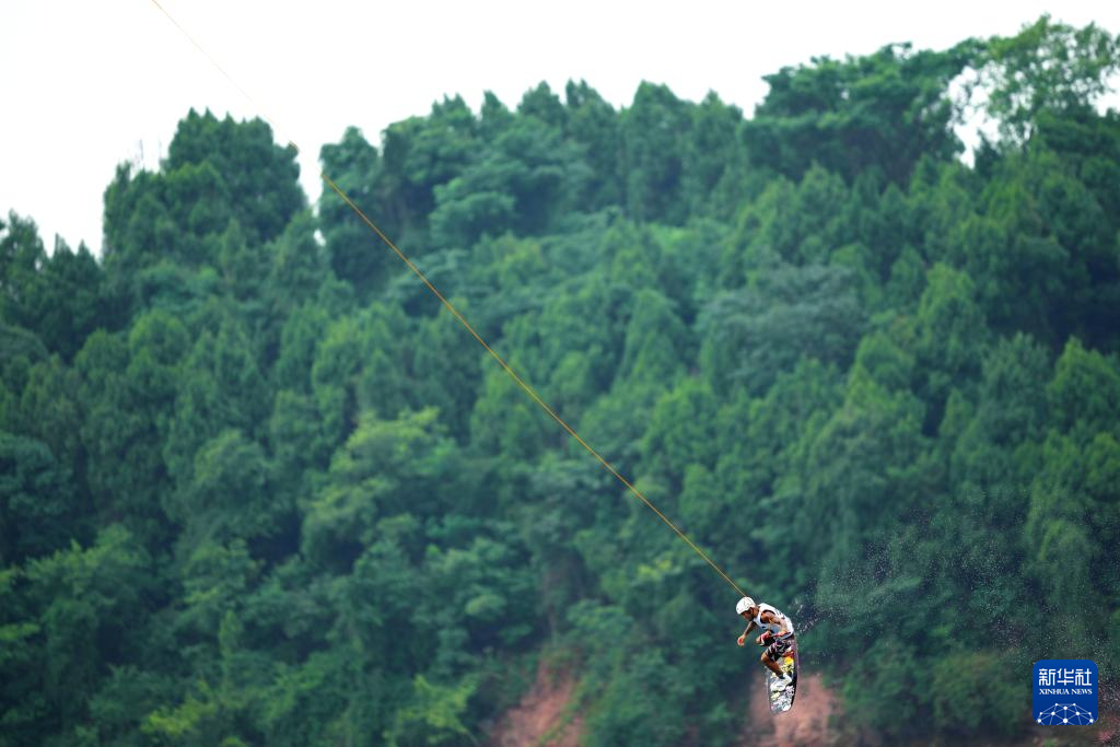 当日,2025年成都世运会索道滑水复活赛在三岔湖桃花岛赛场举行。