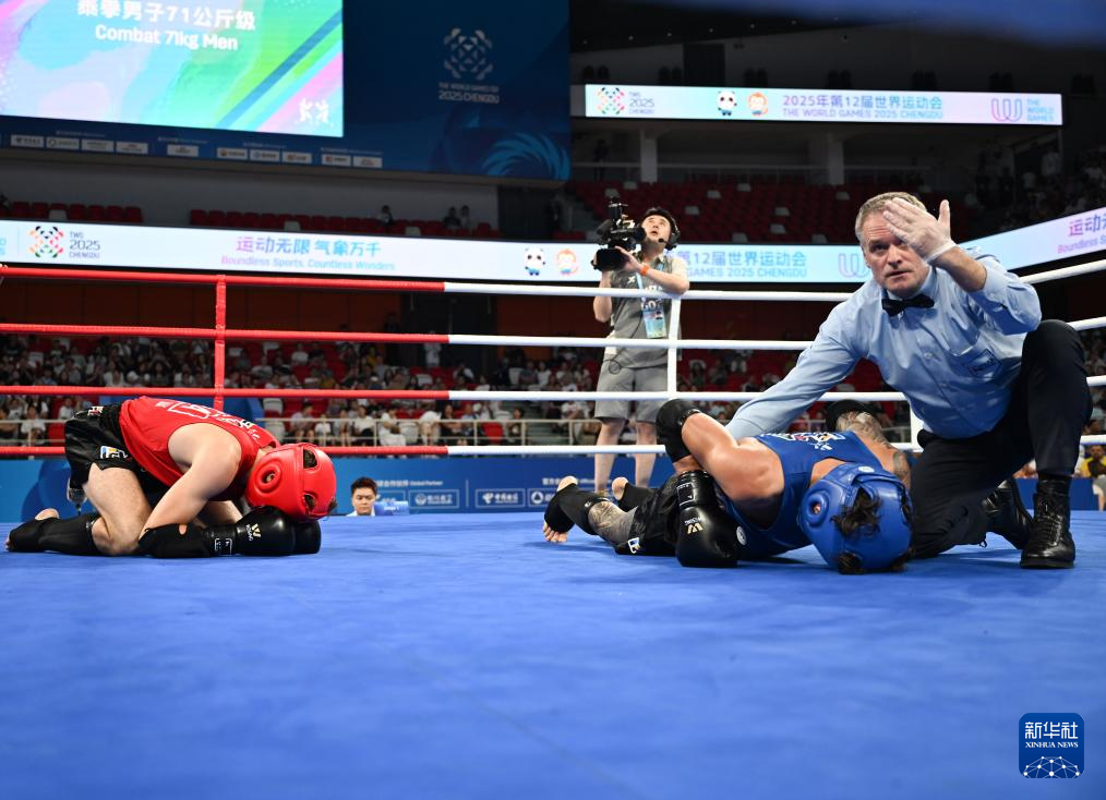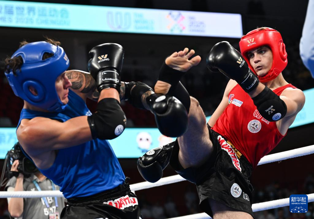 当日,2025年成都世运会泰拳男子71公斤级半决赛举行。