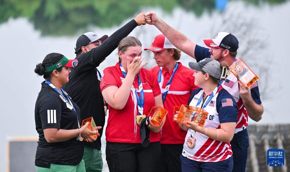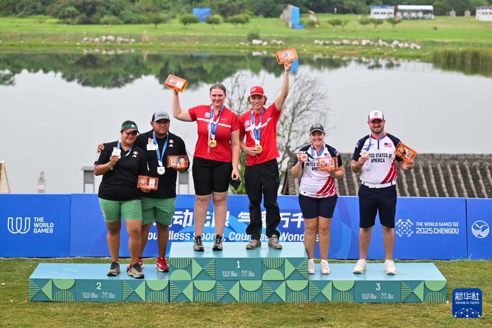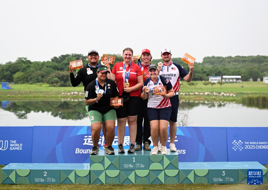 当日,丹麦队获得2025年成都世运会射准射箭复合弓混合团体赛冠军,墨西哥队获得亚军,美国队获得季军。