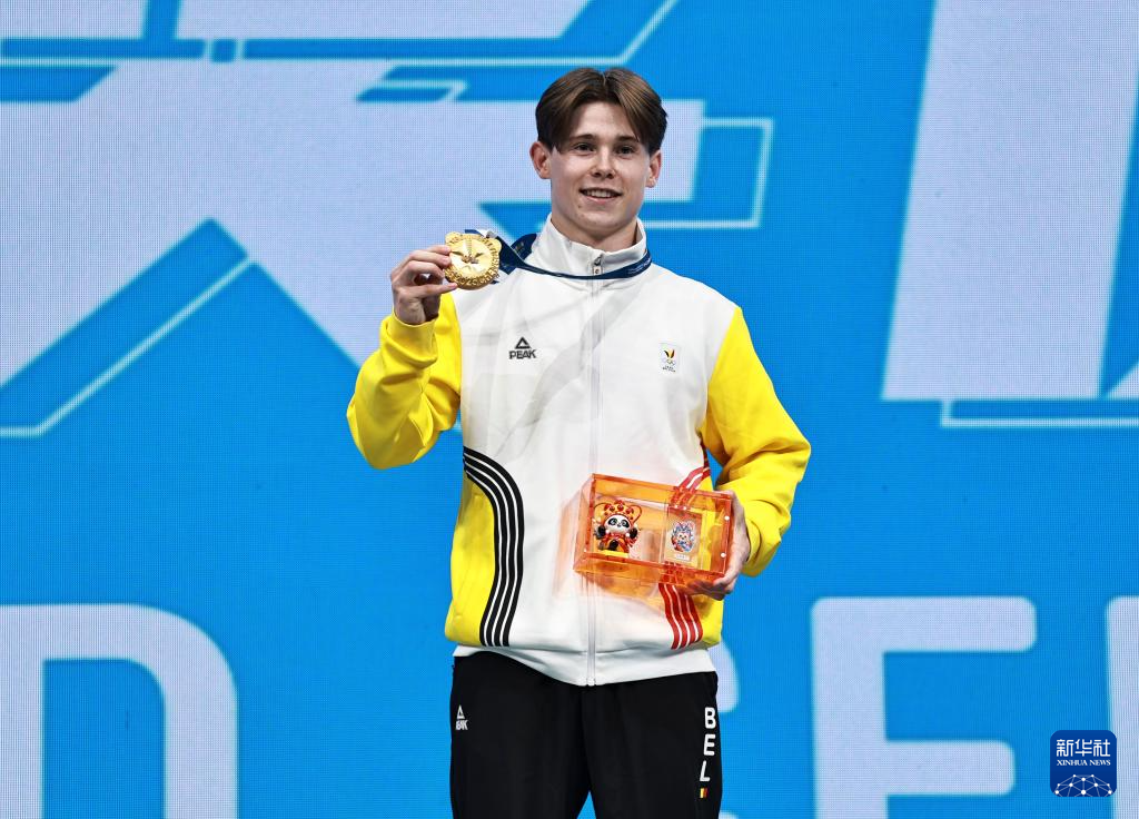 8月9日,冠军比利时选手布伦特在颁奖仪式上。