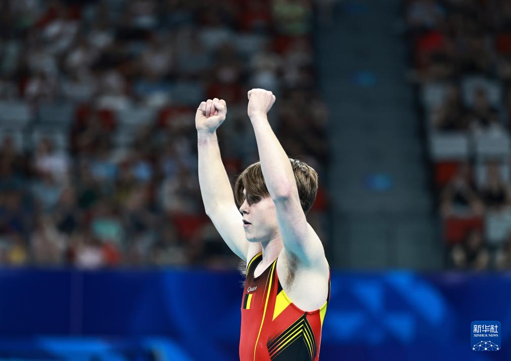 8月9日,比利时选手布伦特在比赛后庆祝。最终,他获得冠军。