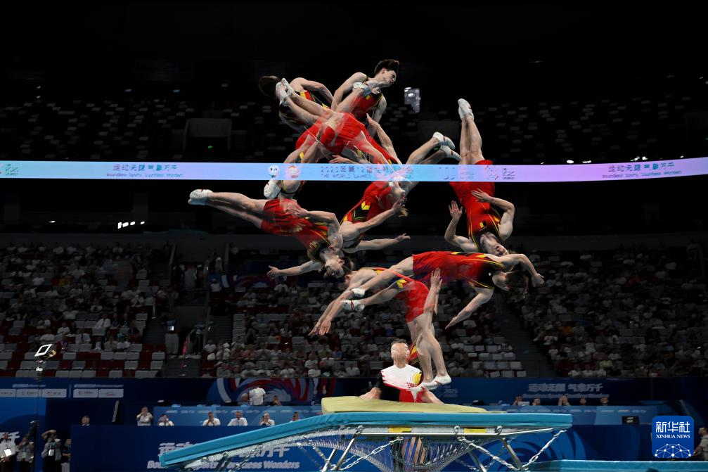 当日,2025年成都世运会蹦床男子双蹦床决赛举行。