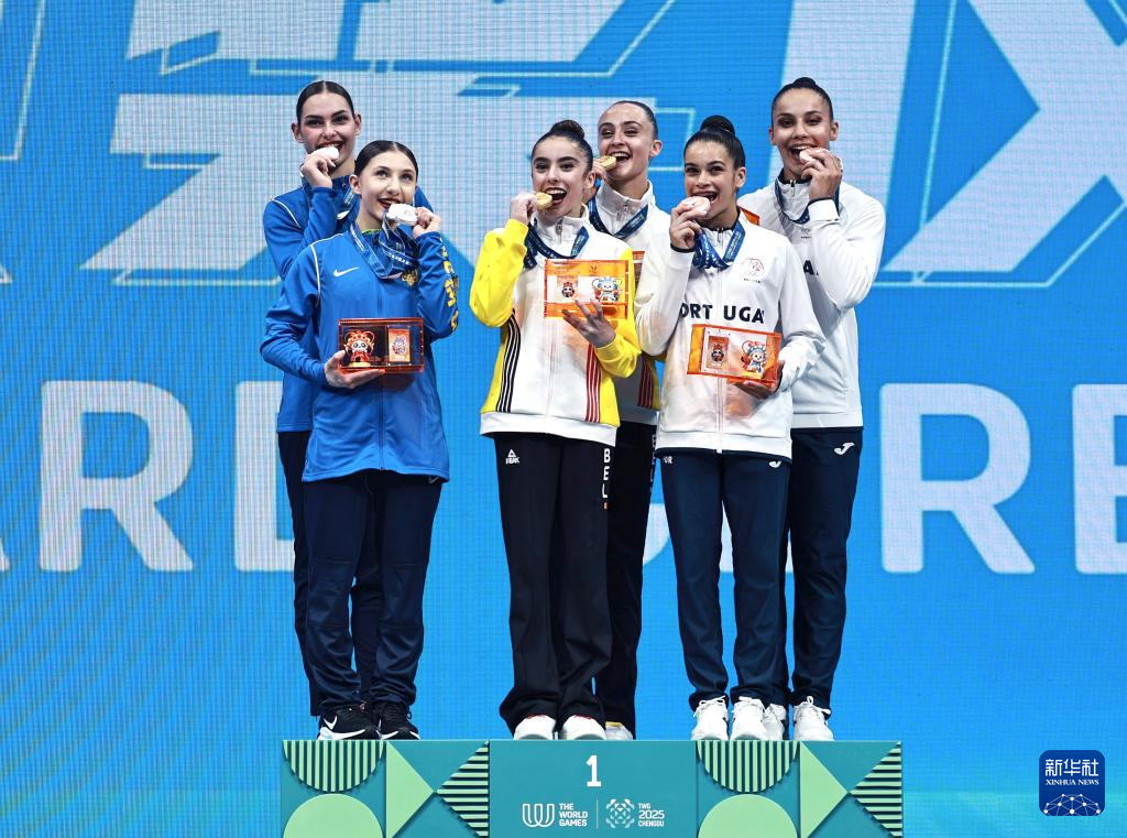 8月8日,冠军比利时队(中)、亚军乌克兰队(左)和季军葡萄牙队在颁奖仪式上。