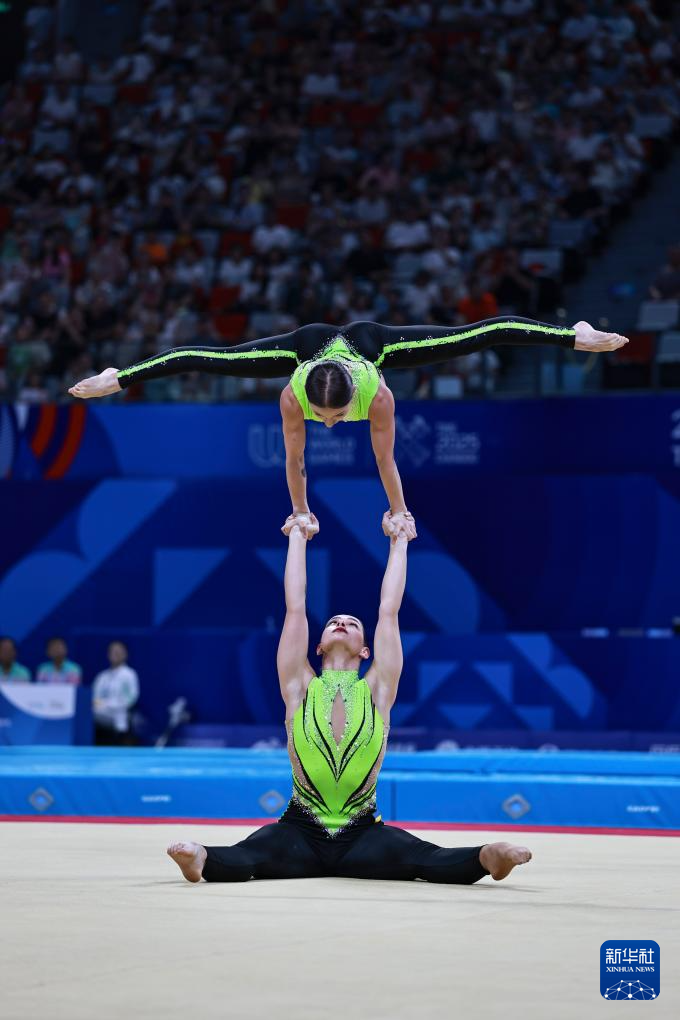 当日,2025年成都世运会技巧女子双人决赛举行。