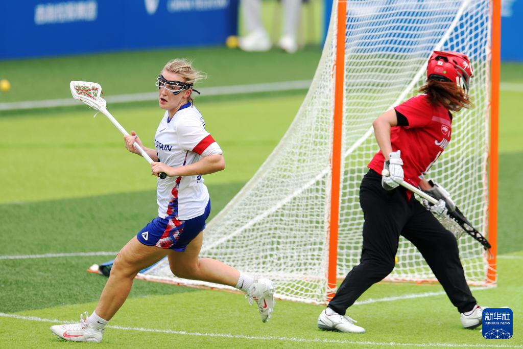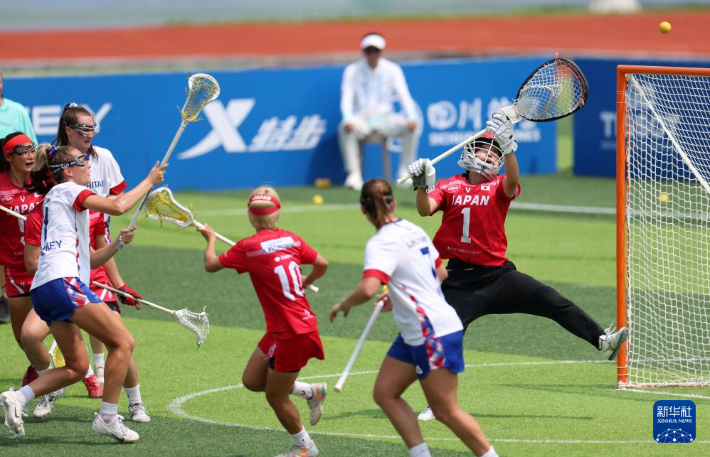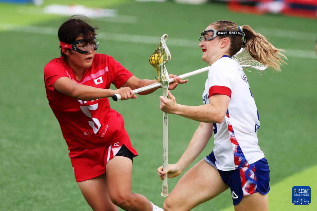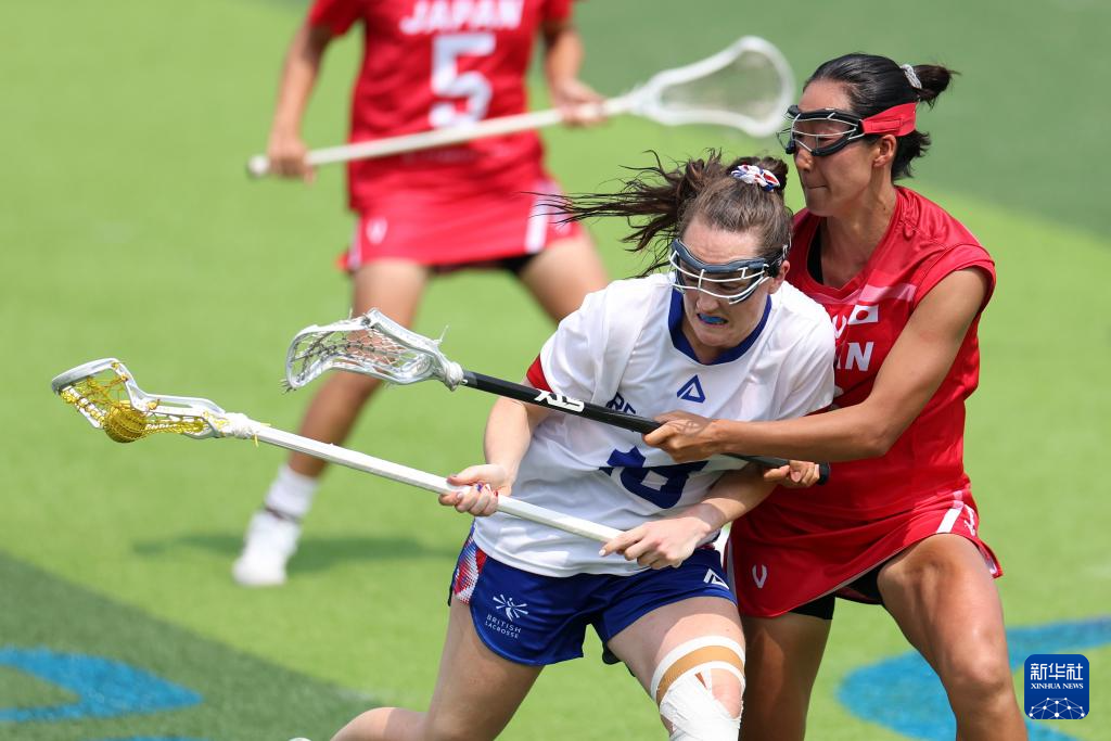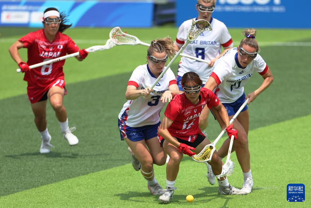 当日,在四川省成都市成都七中东部学校田径场举行的2025年成都世运会女子棍网球预赛A组比赛中,日本队15比10战胜英国队。