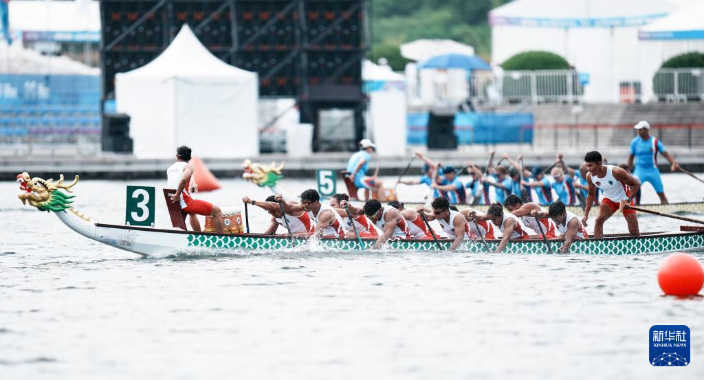 当日,2025年成都世运会龙舟10人座500米半决赛在成都兴隆湖湖滨赛场举行。
