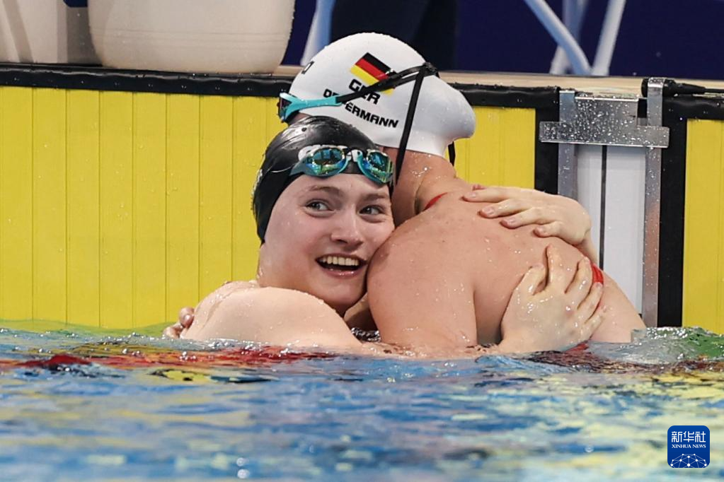 8月9日,冠军德国选手霍尔特(左)与亚军德国选手奥珀曼在比赛后拥抱庆祝。
