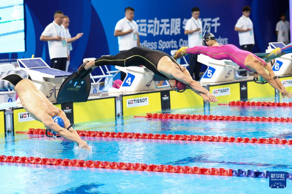 当日,2025年成都世运会男子4x50米水面蹼泳接力决赛举行。