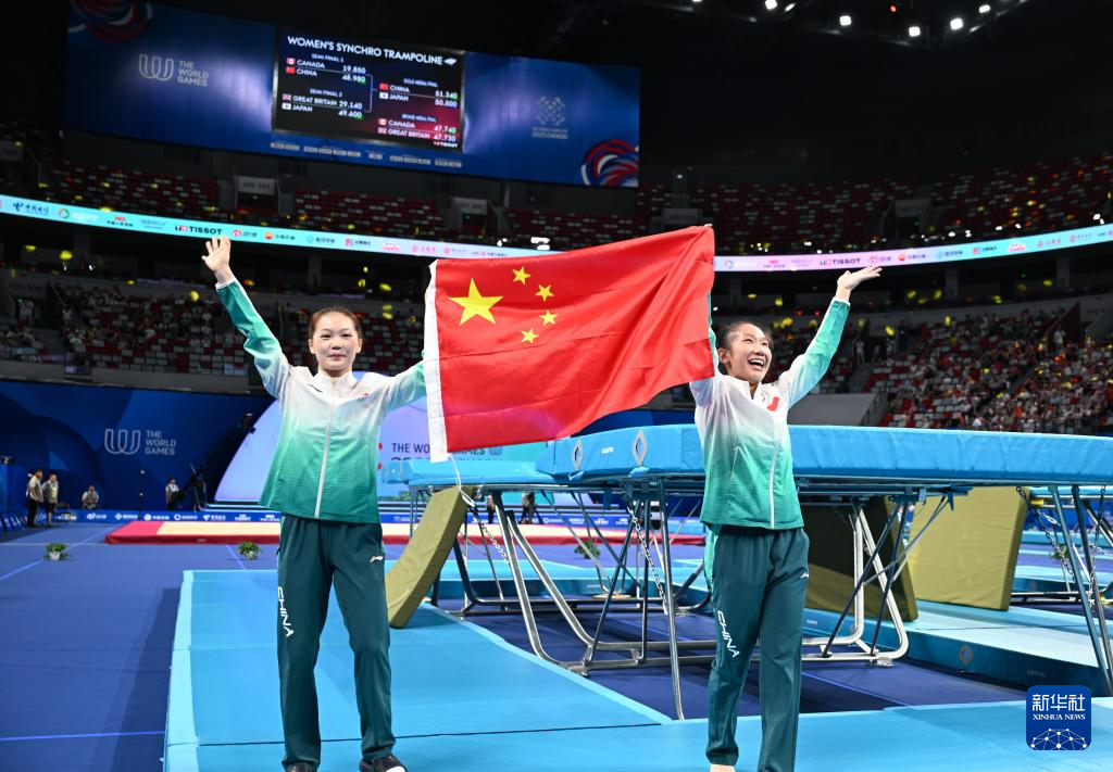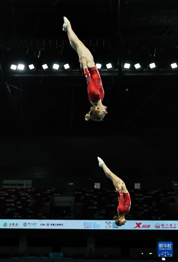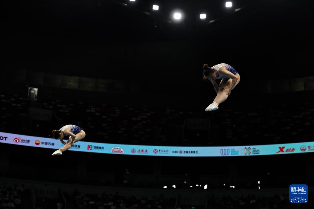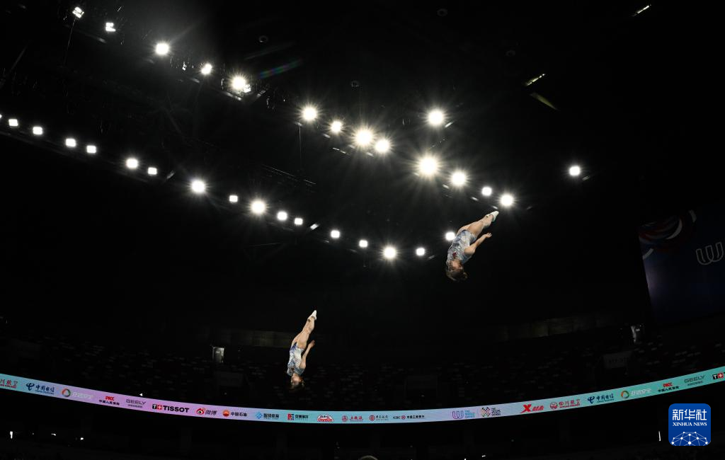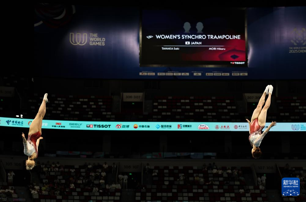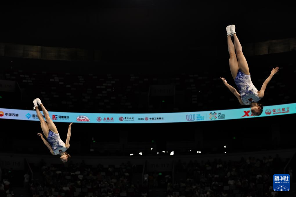 当日,2025年成都世运会蹦床女子双人同步决赛举行。