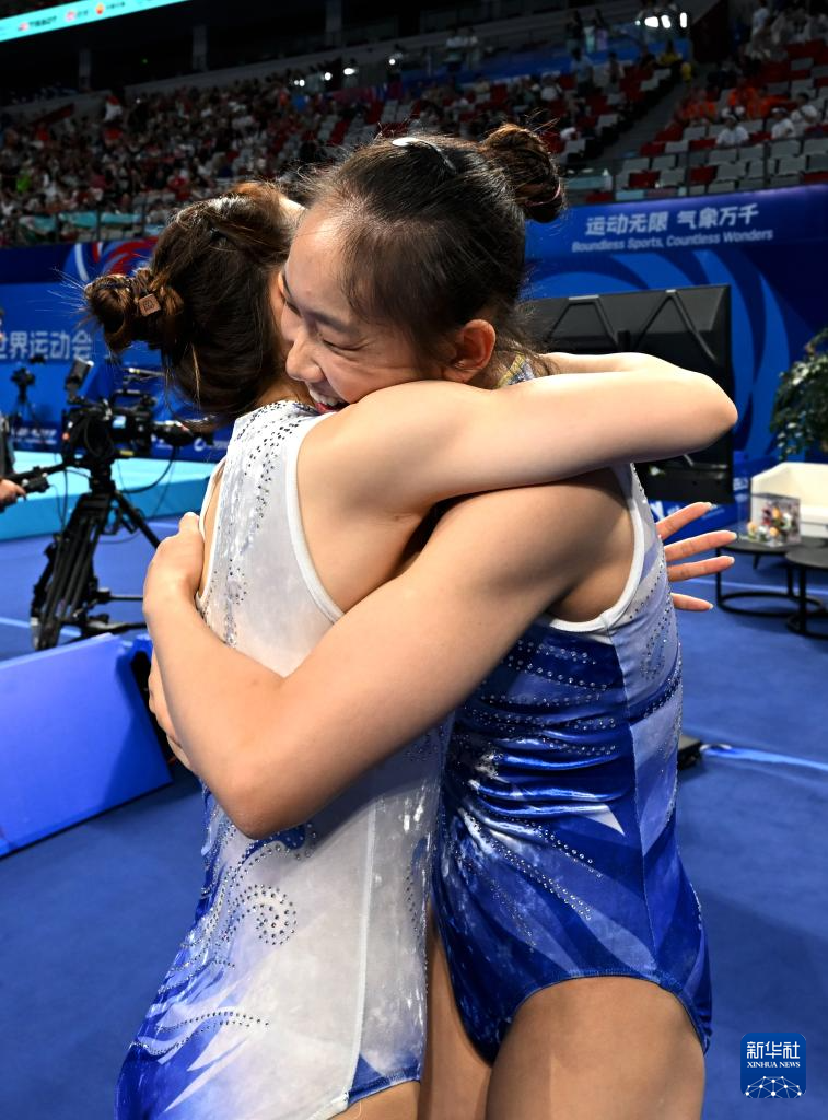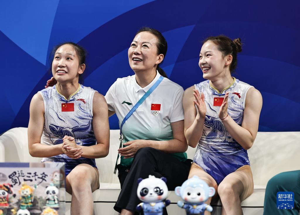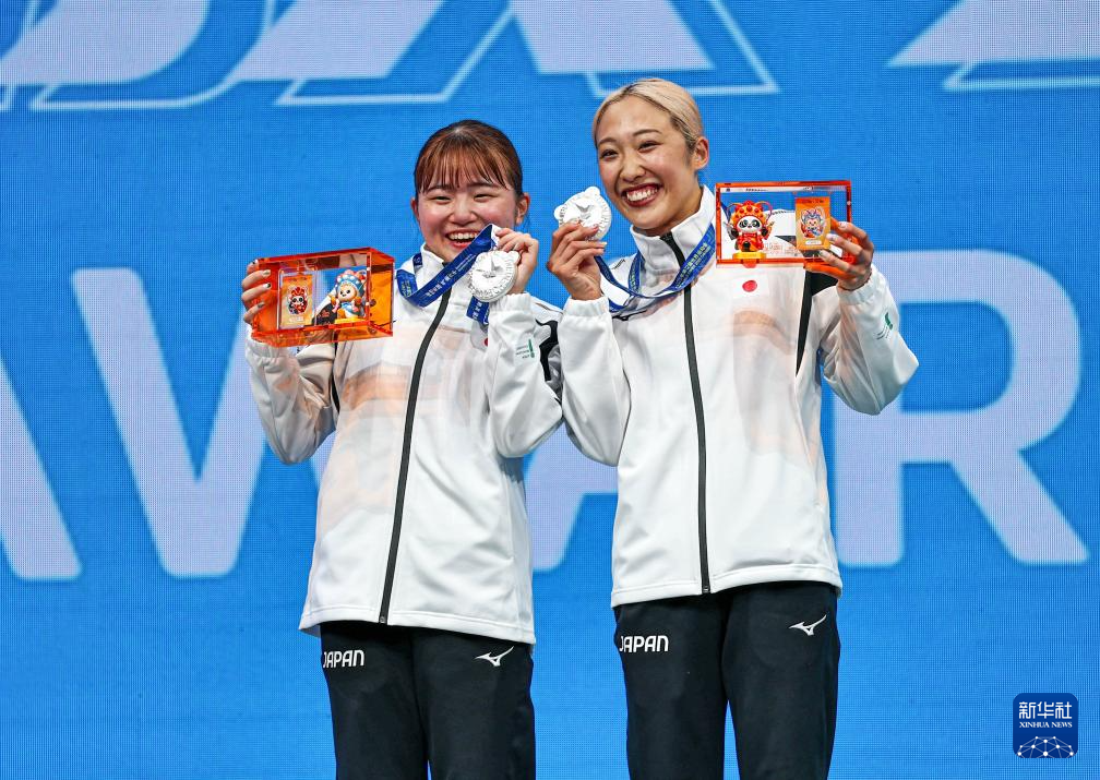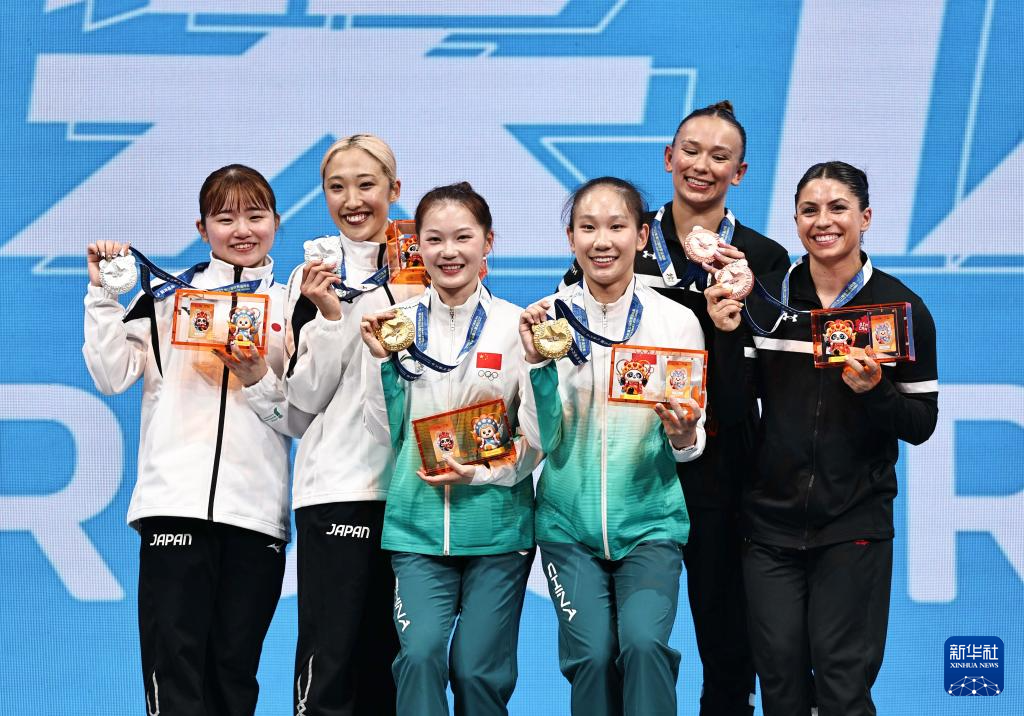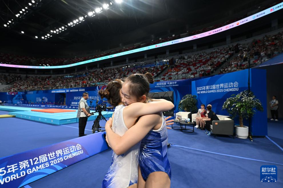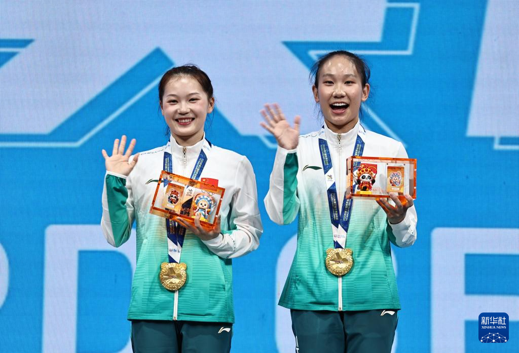 当日,2025年成都世运会蹦床女子双人同步决赛举行。
