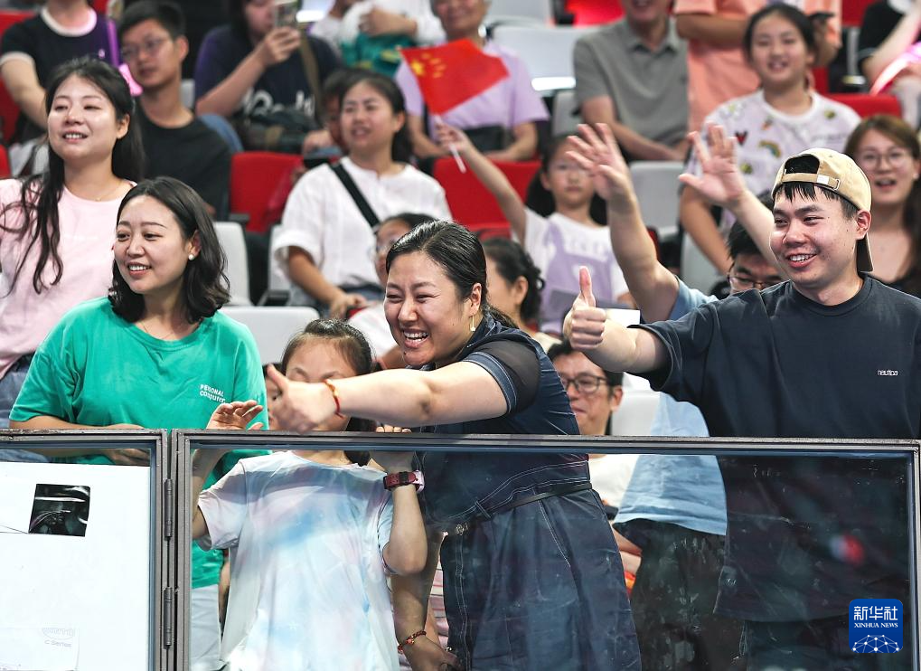 8月10日,观众向中国组合胡译乘/张欣欣点赞。