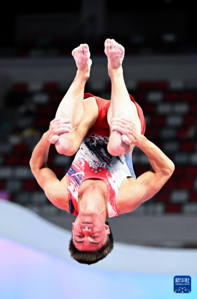 当日,2025年成都世运会蹦床男子单跳决赛举行。