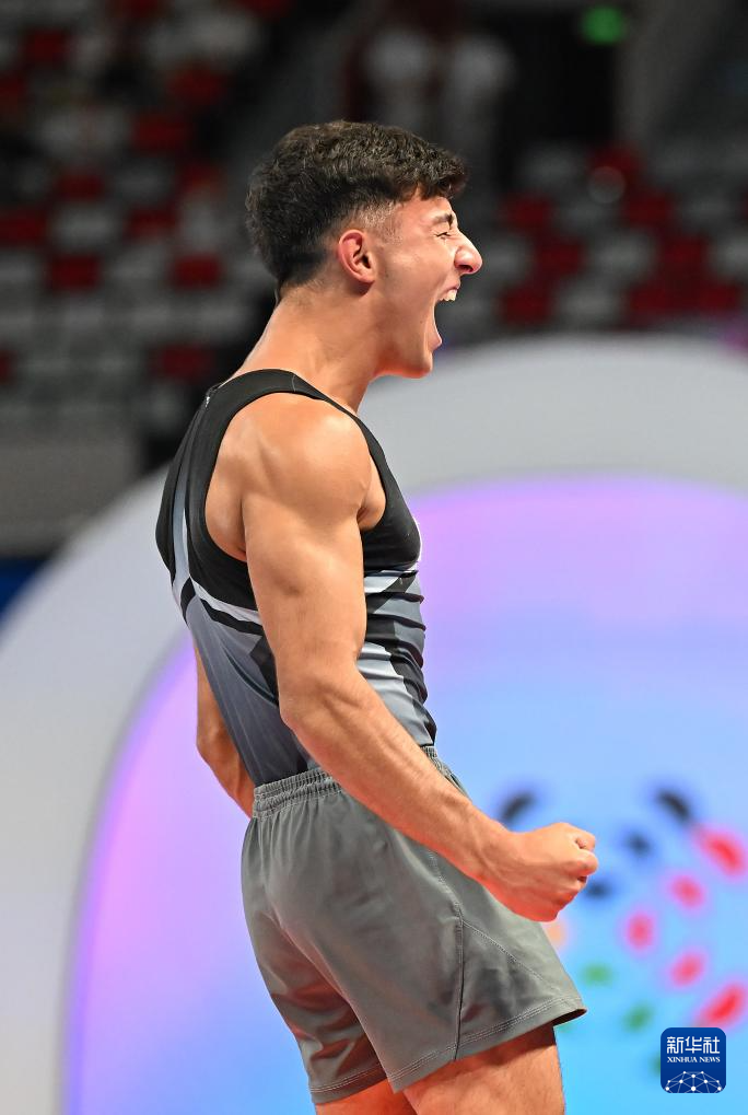 8月10日,亚军阿塞拜疆选手托菲格·阿利耶夫在比赛后庆祝。