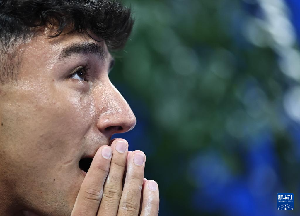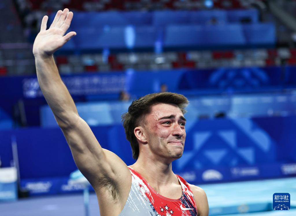 8月10日,冠军美国选手卡登·布朗在比赛后向观众致意。