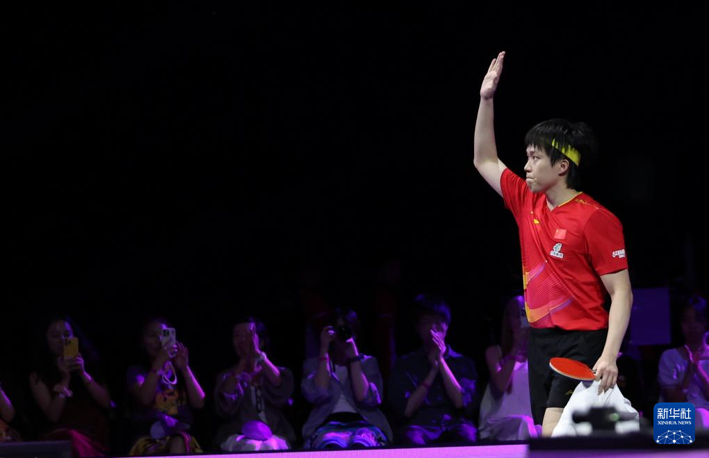 8月10日,中国选手王楚钦在比赛后向观众致意。