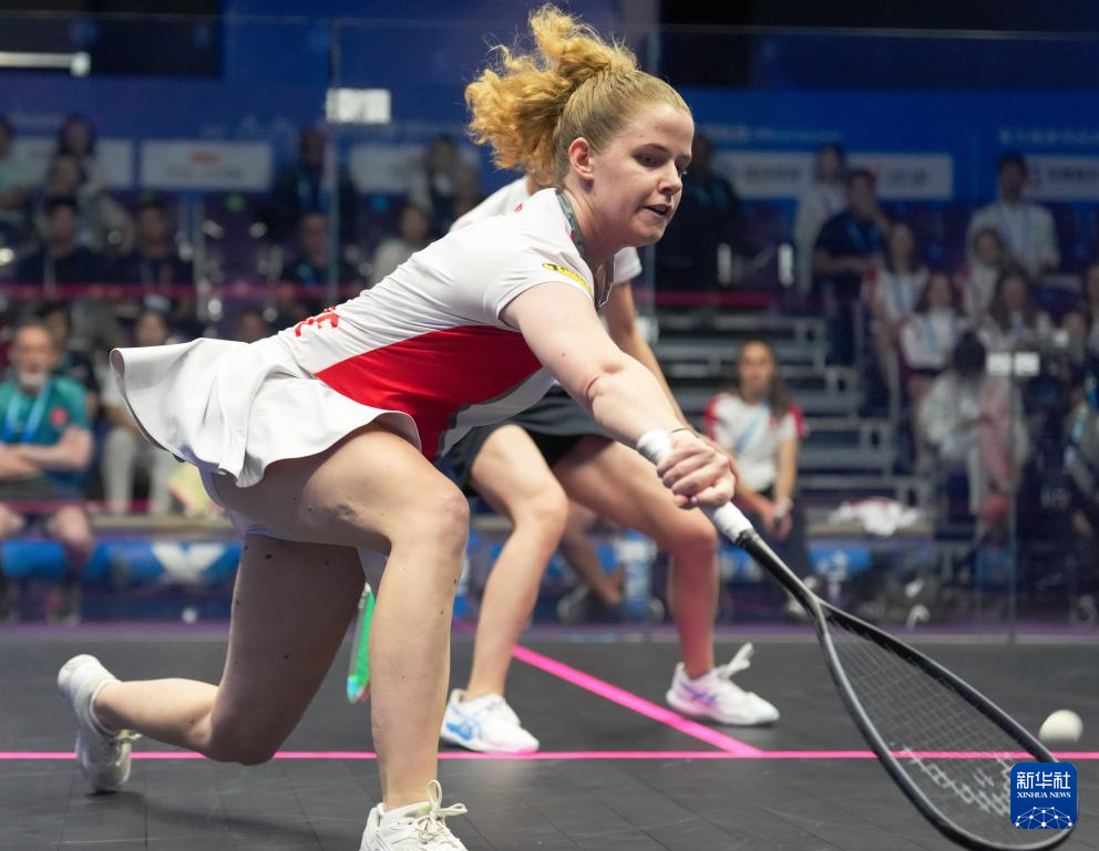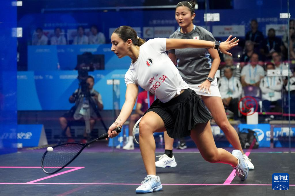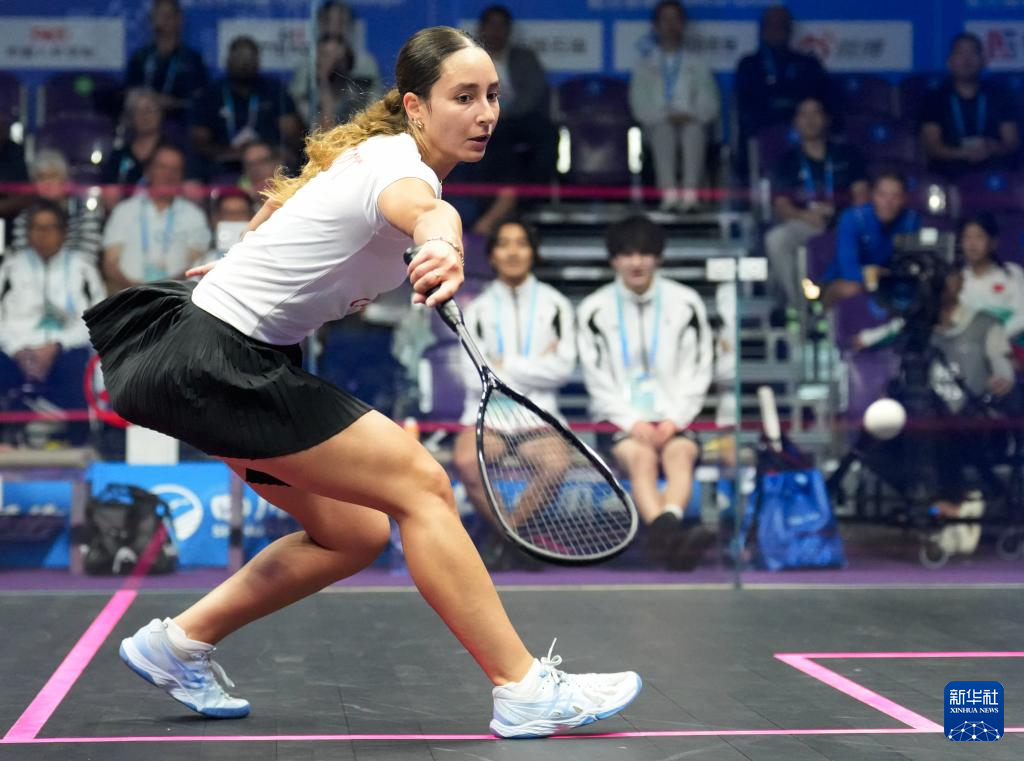 当日,在2025年成都世运会壁球女子单打四分之一决赛中,日本选手渡边聪美战胜埃及选手哈比芭·哈妮。