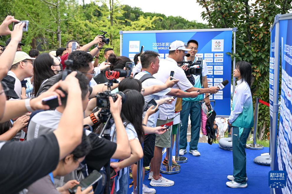 8月10日,中国选手徐露(右一)在赛场接受采访。