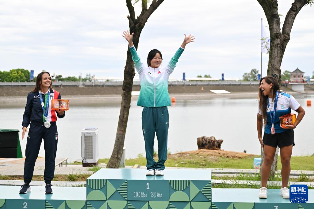 当日,在2025年成都世运会女子尾波滑水自由式决赛中,中国选手徐露获得冠军。