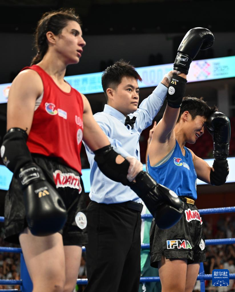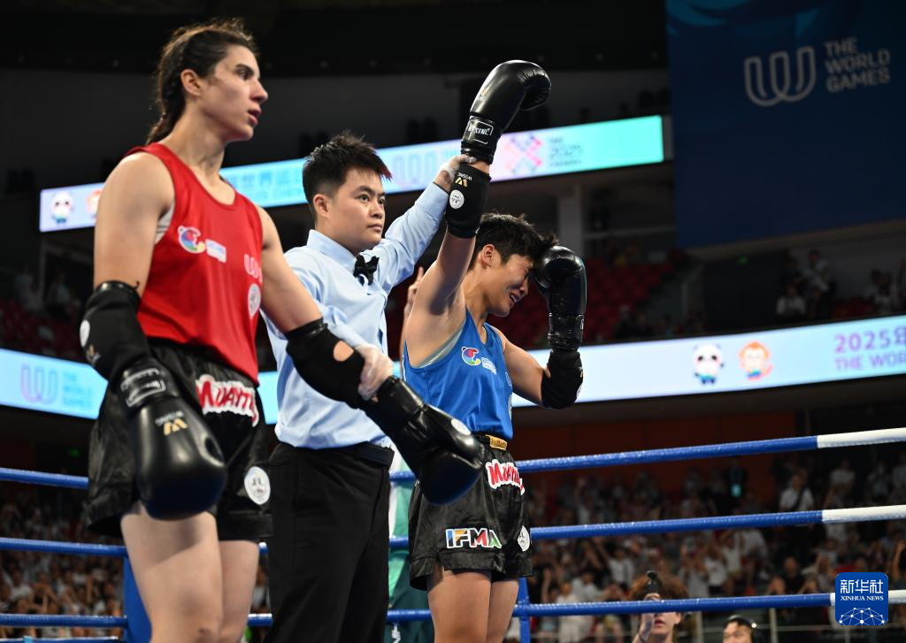 当日,在2025年成都世运会泰拳女子60公斤级金牌赛中,中国选手韩鑫战胜土耳其选手屈布拉,夺得冠军。