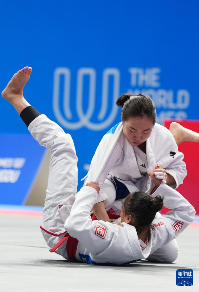 当日,在2025年成都世运会柔术女子寝技52公斤级决赛中,韩国选手林彦周战胜菲律宾选手纳波利斯,夺得冠军。