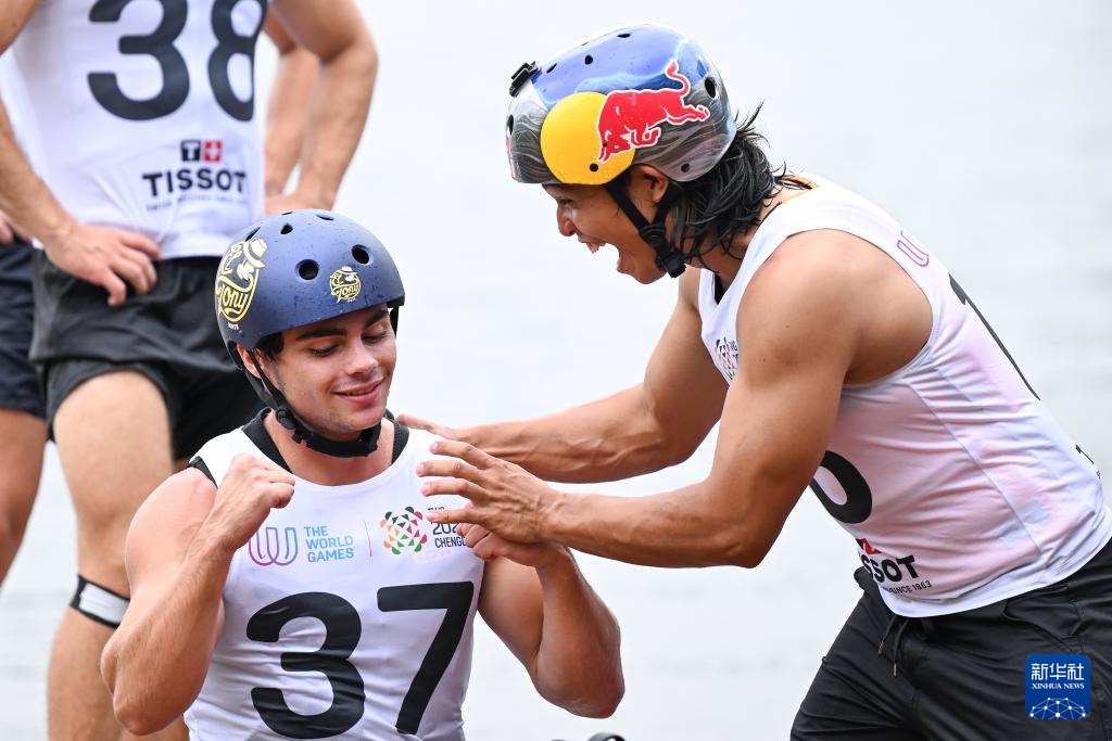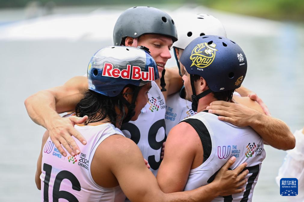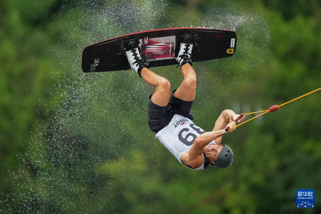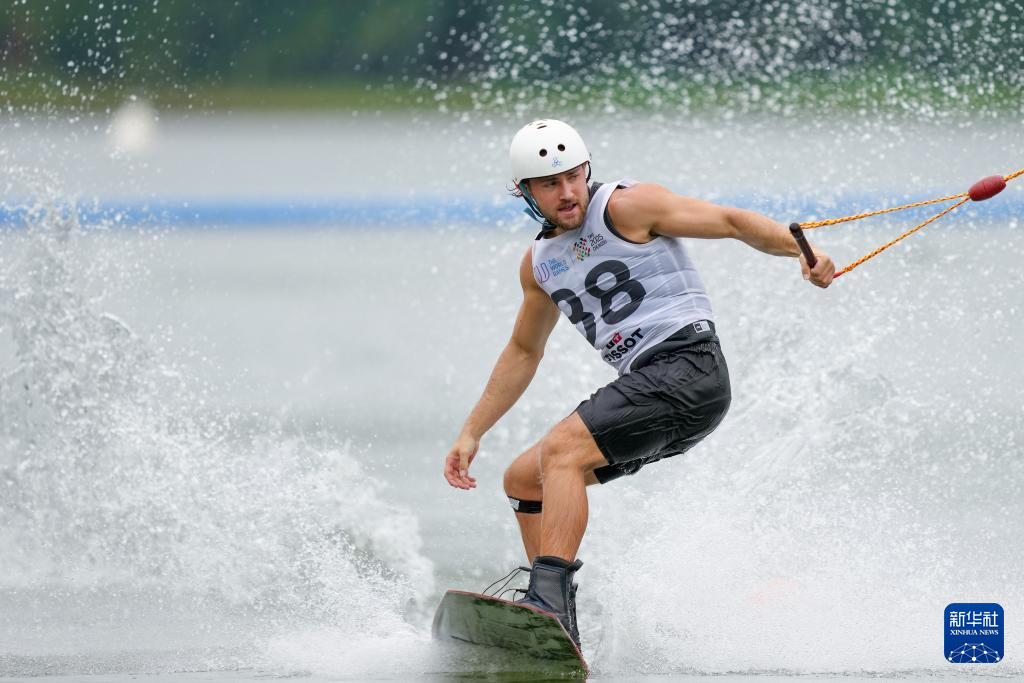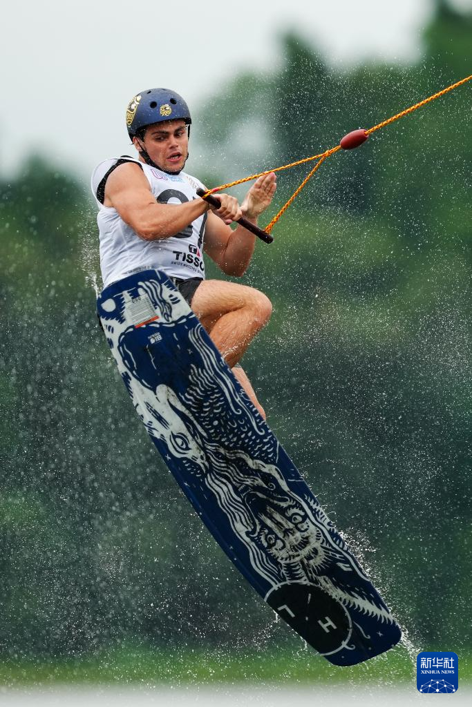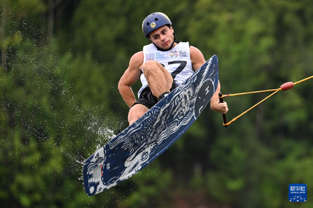 当日,2025年成都世运会男子索道滑水决赛在三岔湖桃花岛赛场举行。
