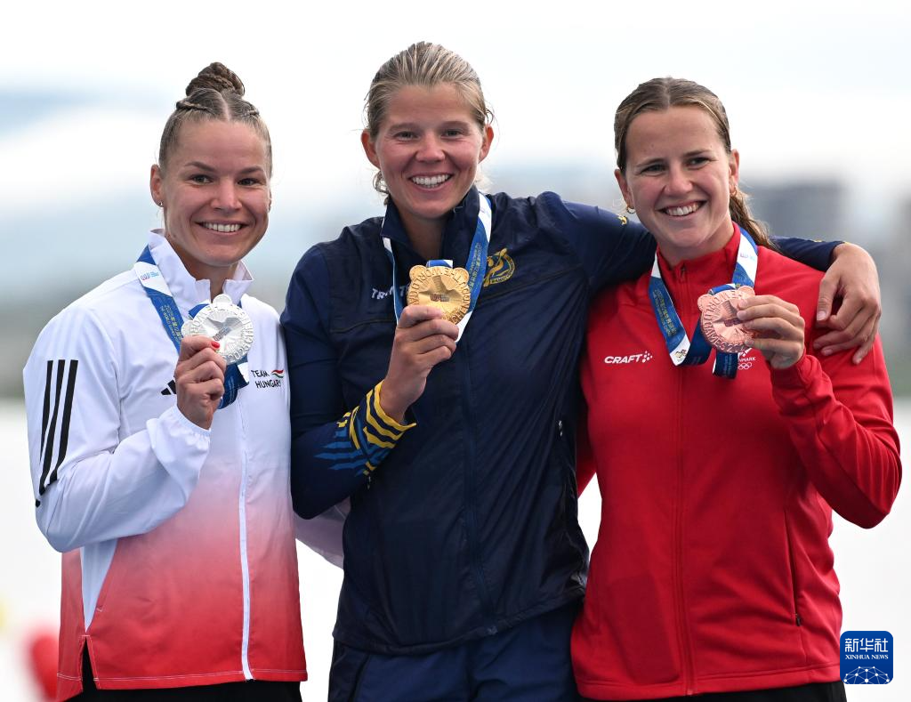 8月10日,冠军瑞典选手安德松(中)、亚军匈牙利选手万达(左)、季军丹麦选手霍斯楚普在颁奖仪式上。