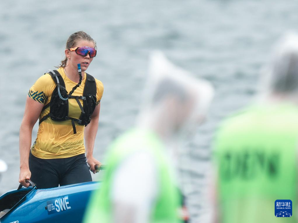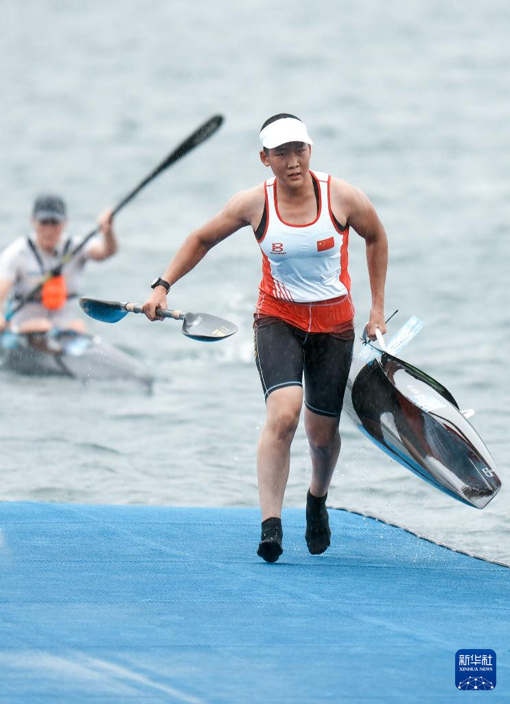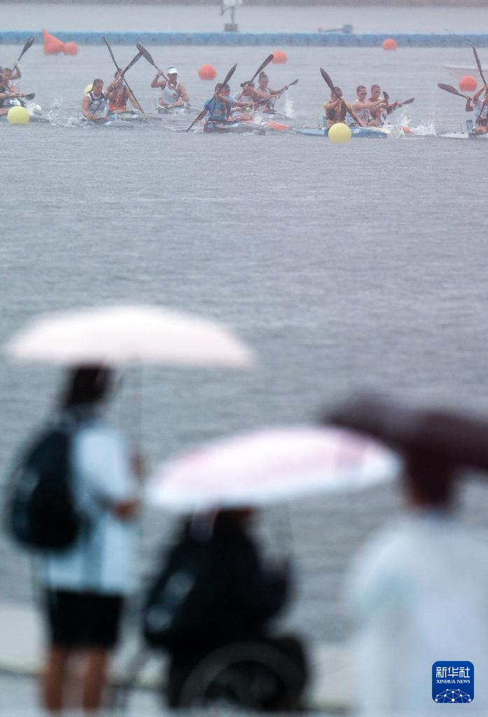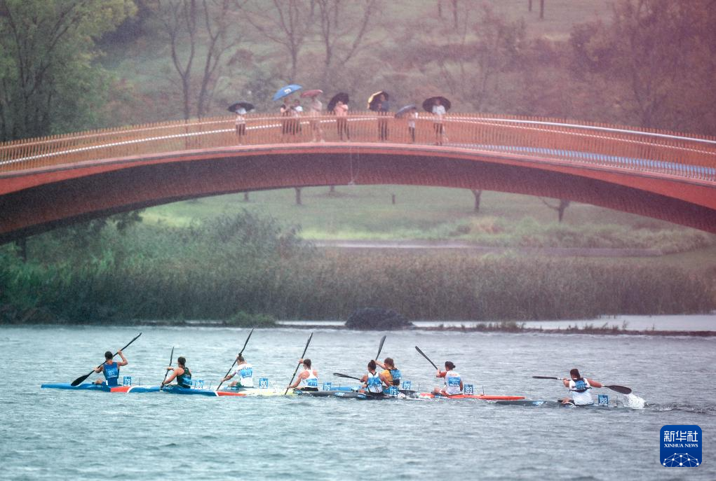 8月10日,2025年成都世运会皮划艇马拉松女子单人皮艇长距离决赛在雨中举行。