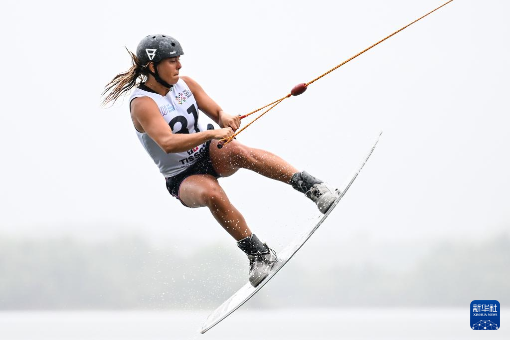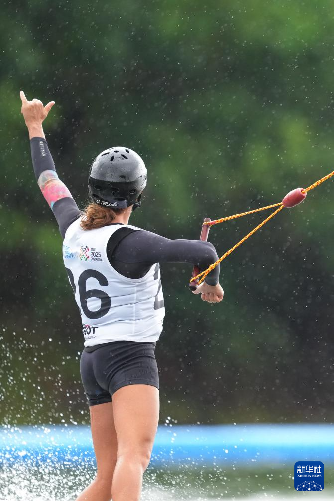 当日,2025年成都世运会女子索道滑水决赛在三岔湖桃花岛赛场举行。