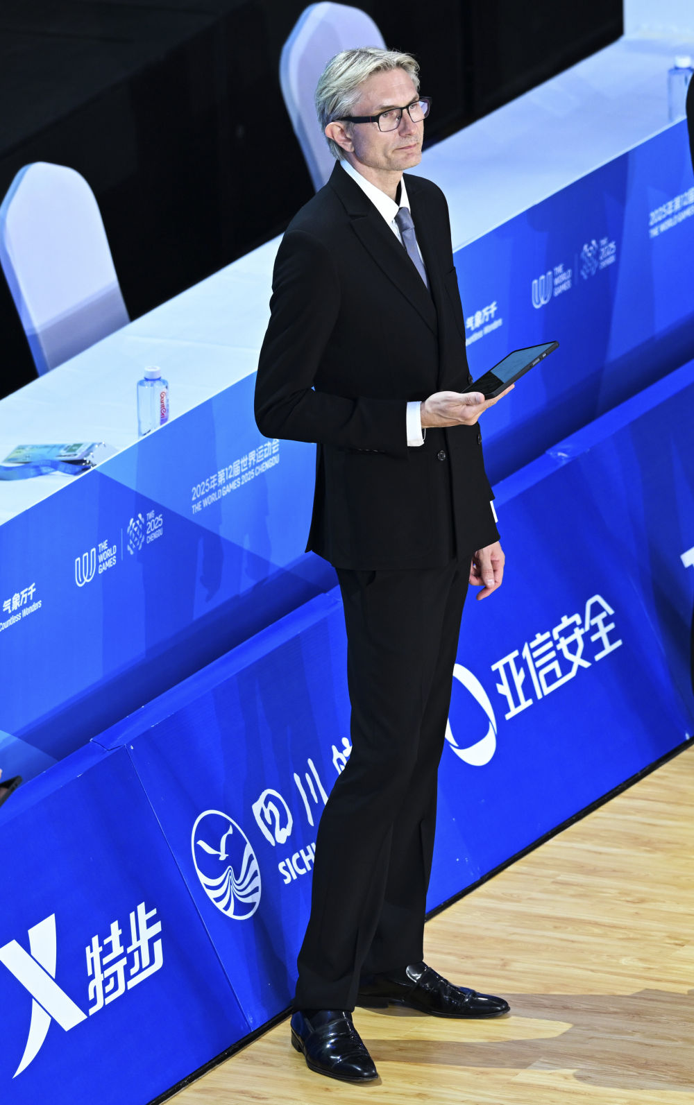 1970年出生的辛金斯来自拉脱维亚,7岁开始跳舞,先是职业舞者,后来退役转做教练与裁判。2024年无锡的亚洲体育舞蹈节,他第一次来中国执裁。成都世运会,是他的第二次中国之旅。