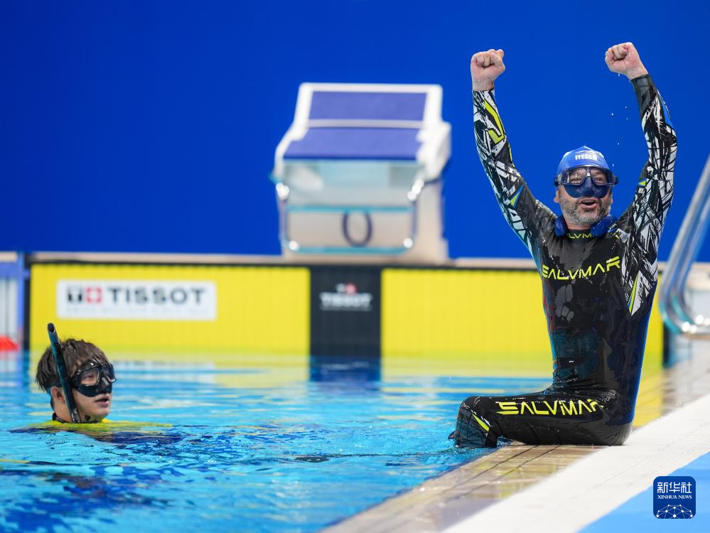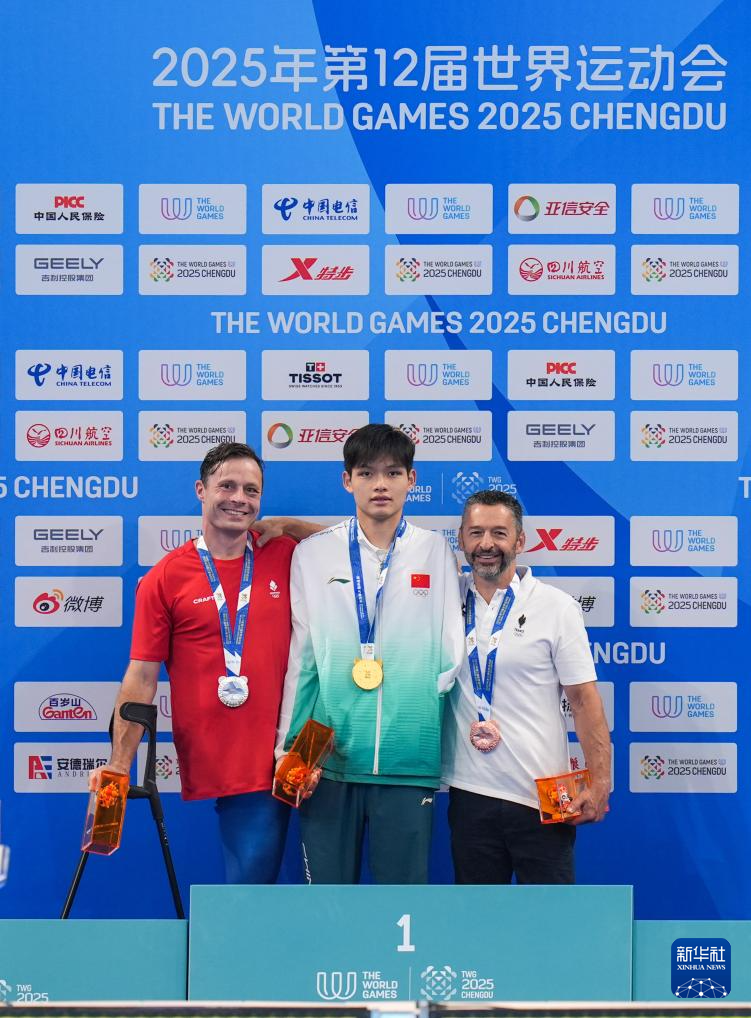 当日,2025年成都世运会自由潜水男子动态有蹼FFS1-FFS2决赛在成都体育学院三岔湖校区举行,中国选手龙邓喜以181.5米的成绩夺冠。