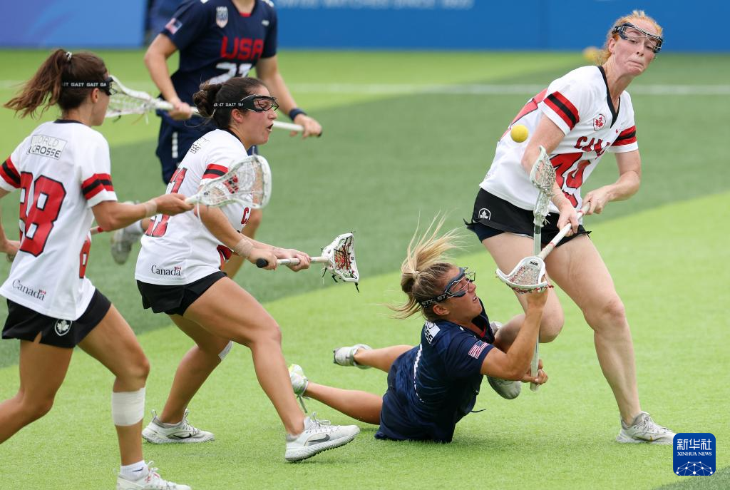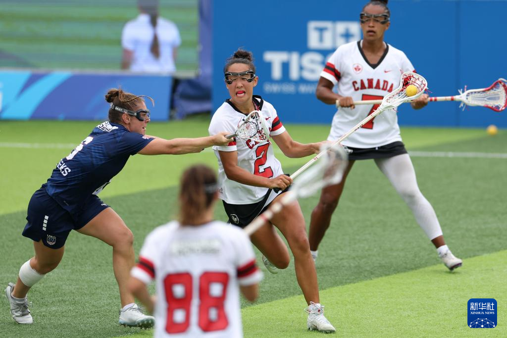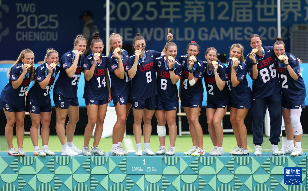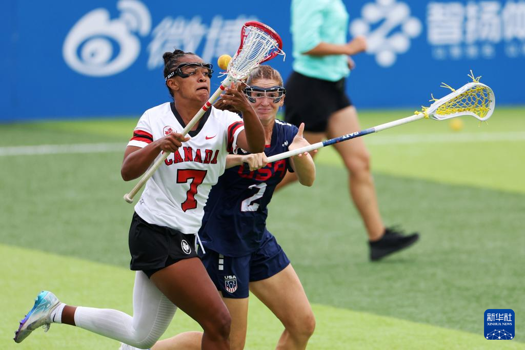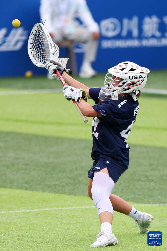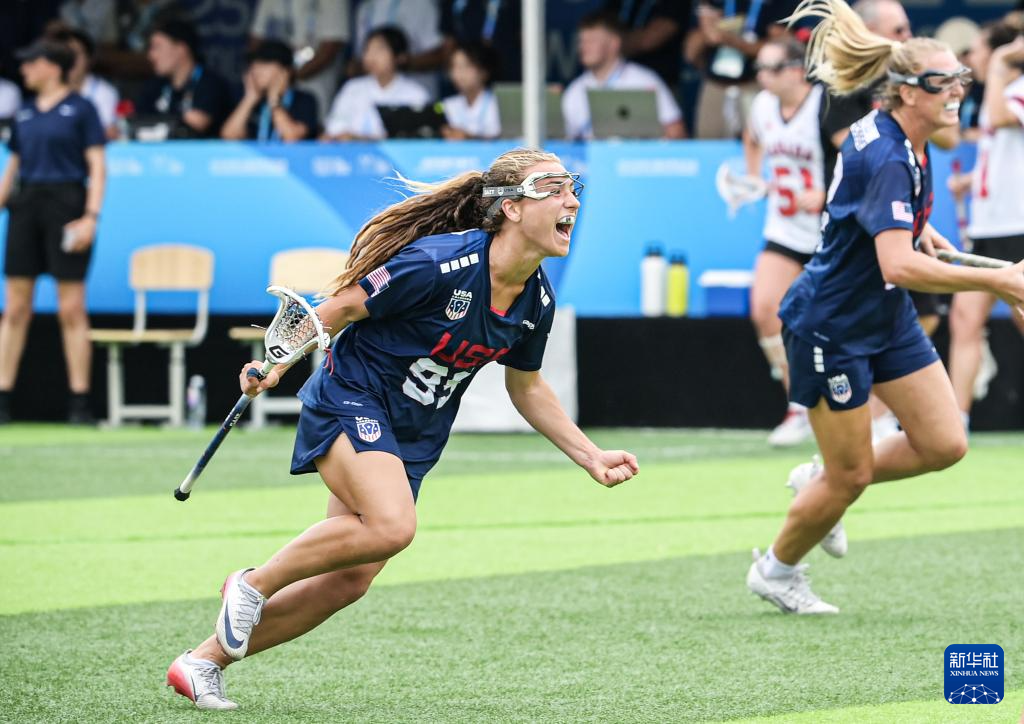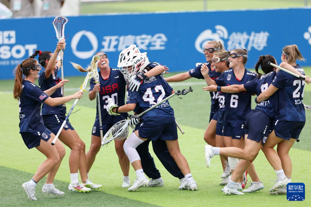 当日,在四川省成都七中东部学校田径场举行的2025年成都世运会女子棍网球金牌赛中,美国队16比8战胜加拿大队,夺得金牌。