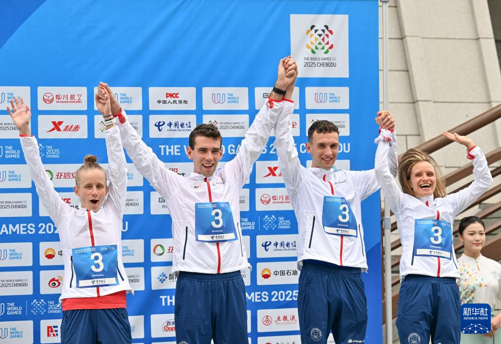 当日,2025年成都世运会定向混合短距离接力决赛在成都东部新区定向赛场举行。最终,瑞士队、瑞典队和捷克队分获冠亚季军。