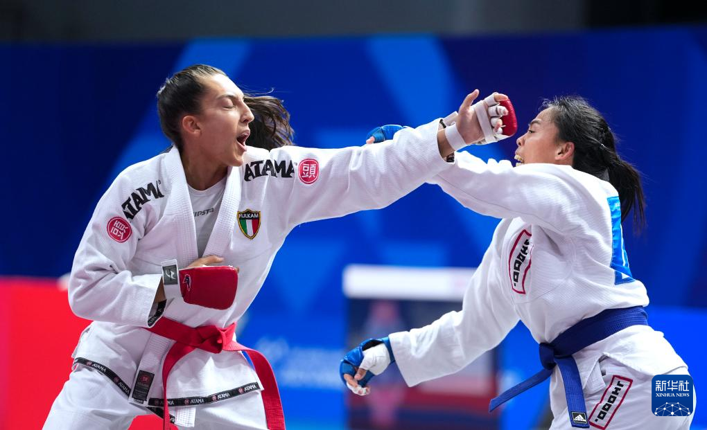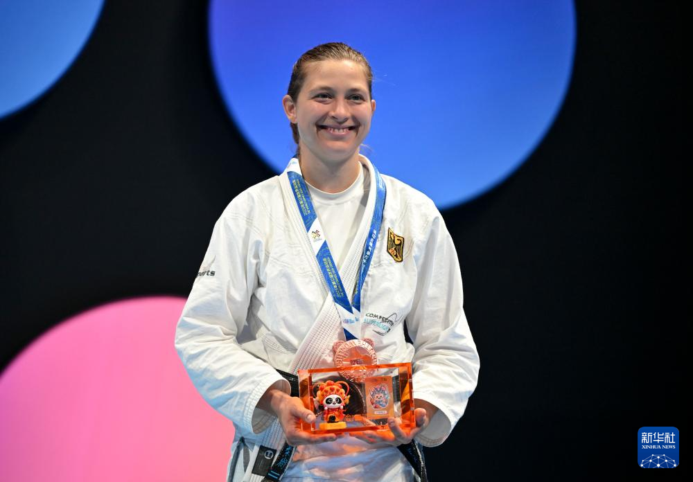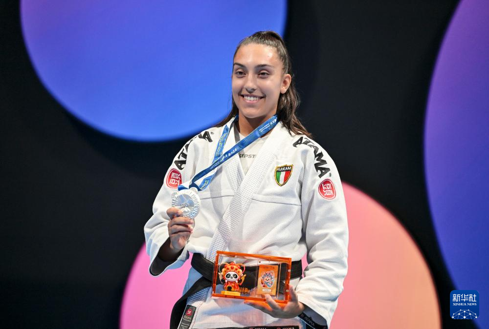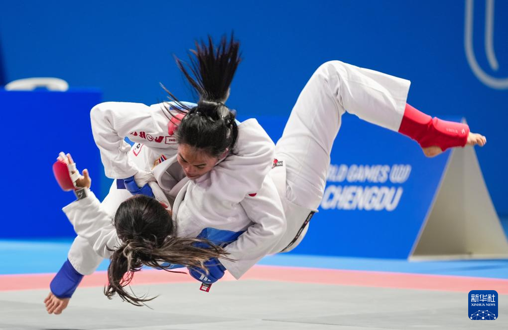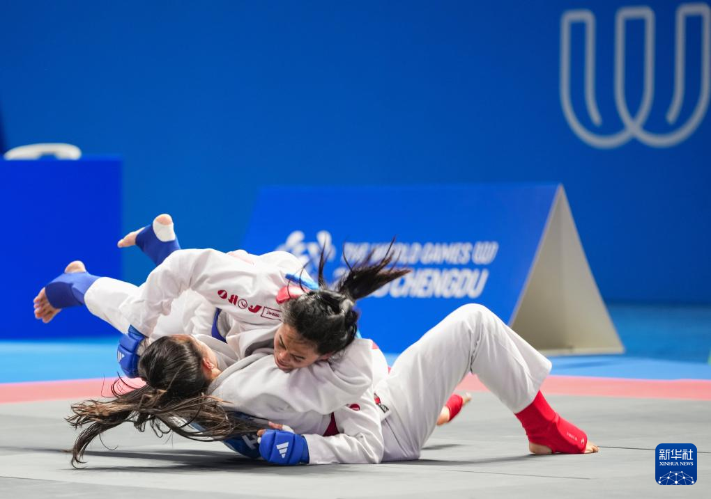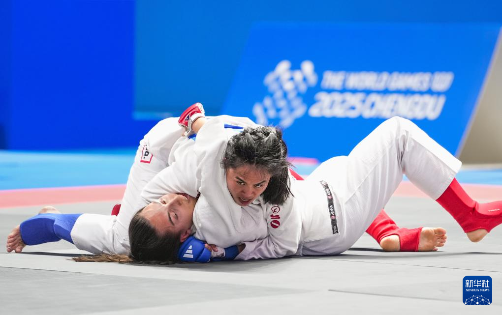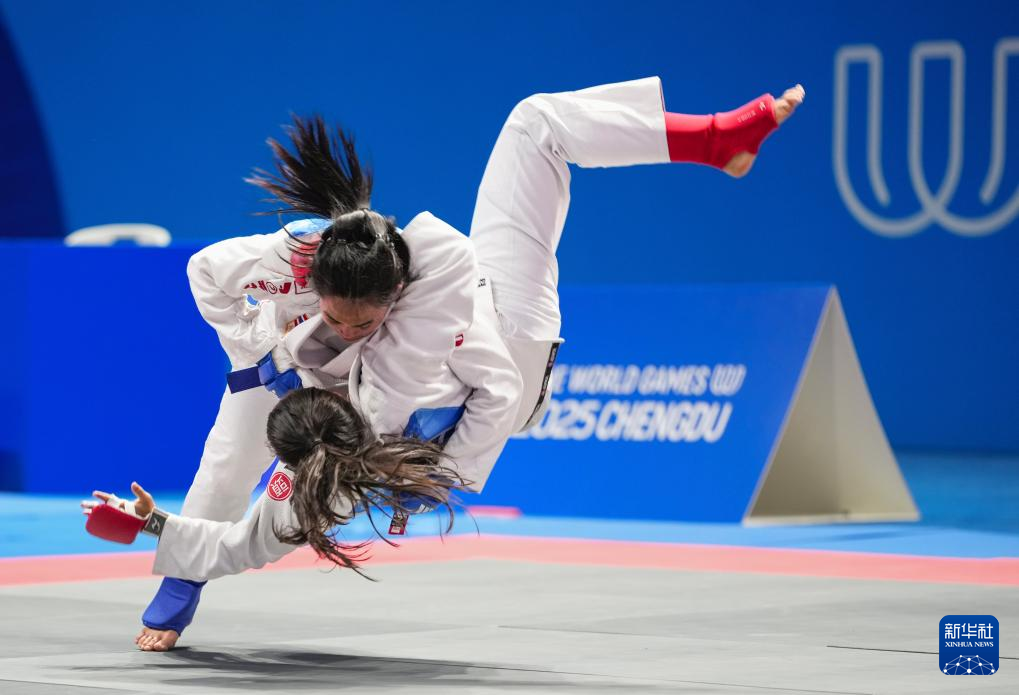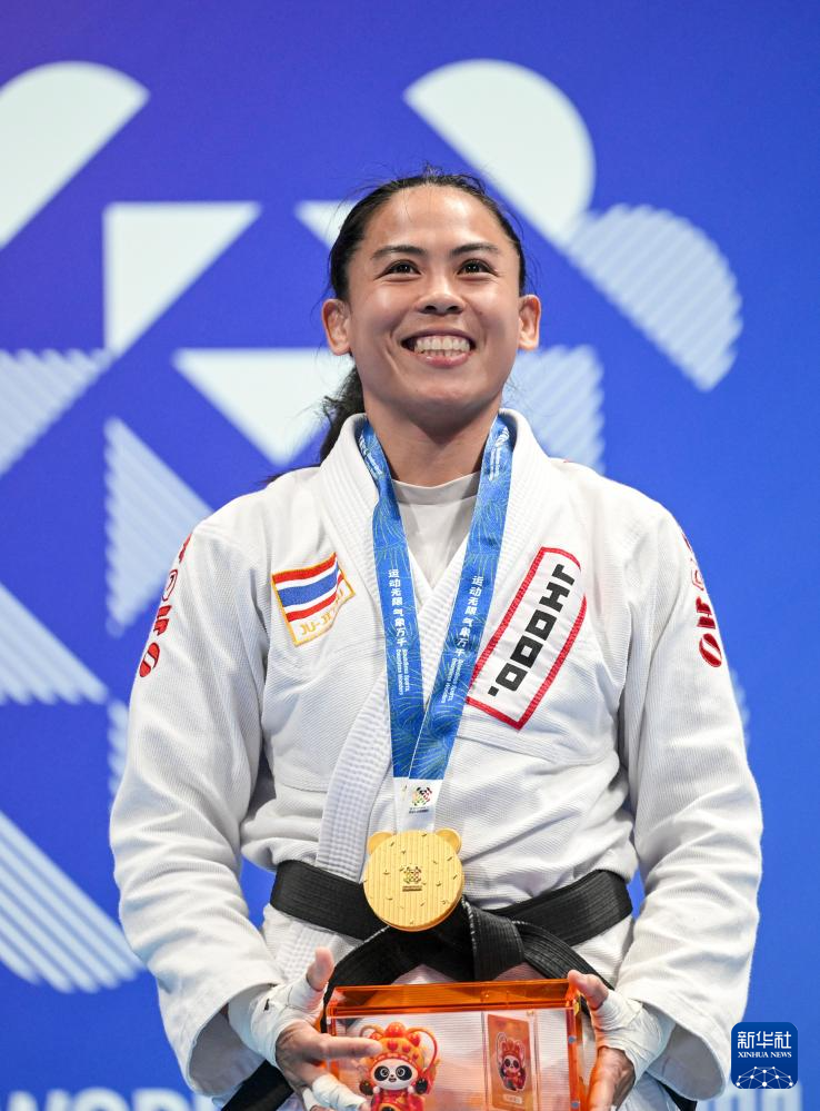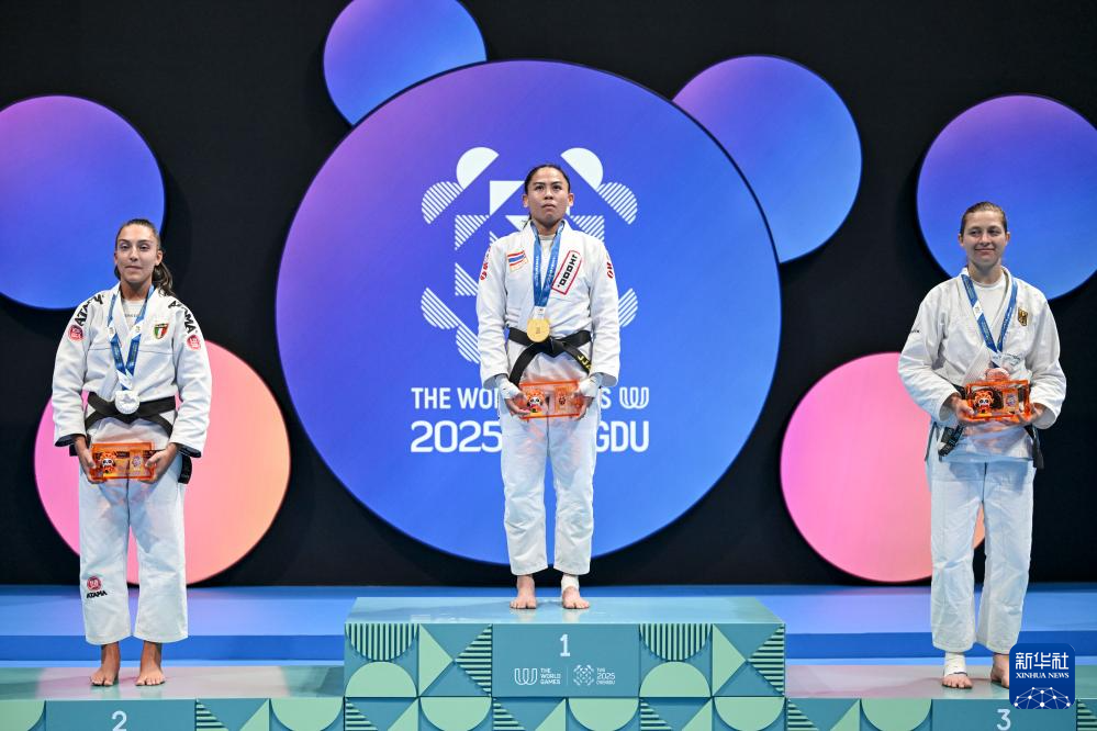 当日,在2025年成都世运会柔术女子搏击63公斤级金牌赛中,泰国选手社那探战胜意大利选手菲奥雷利,夺得冠军。