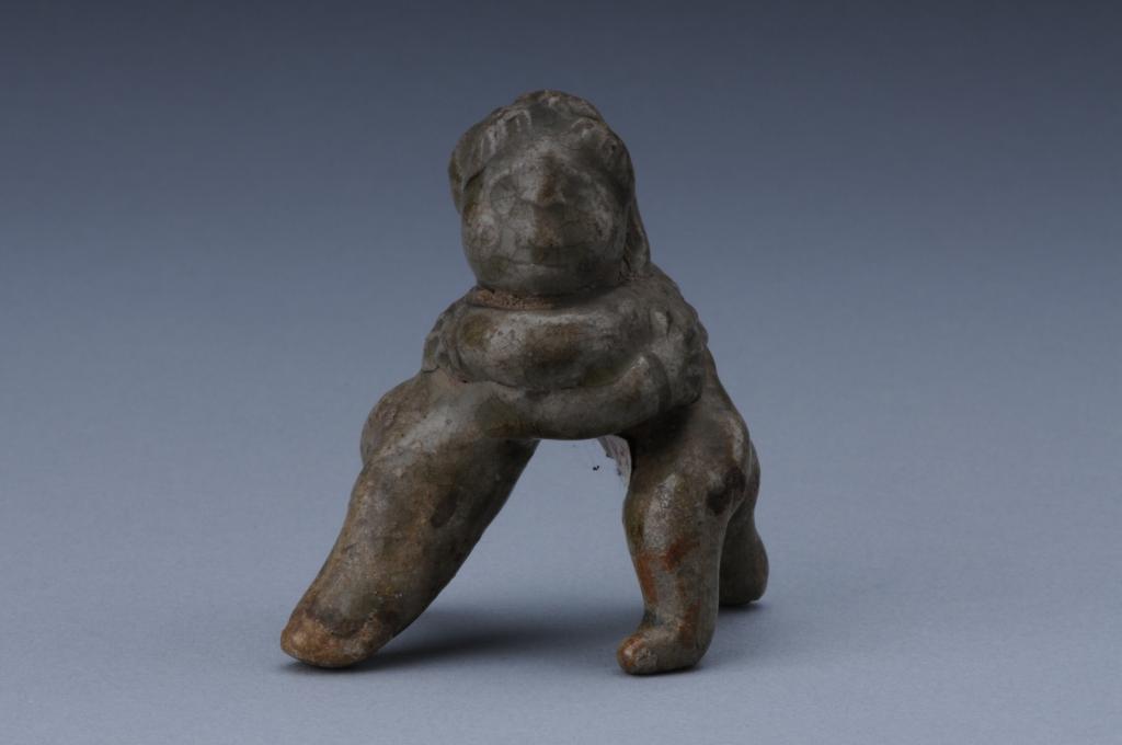 四川博物院收藏的东汉七盘舞杂技画像砖,则为我们打开了古代体操的艺术之门。画像砖上的三位表演者各展绝技,左侧艺人身体后弯成桥,这一“反弓”动作恰似现代艺术体操中的柔韧。成都世运会体操技巧项目恰好设有女子三人小项,运动员们通过同伴配合,完成各种平衡、抛接、柔韧、翻腾等动作,并有音乐和舞蹈元素贯穿始终。宜宾市博物院的东汉陶倒立俑更将对身体控制力的追求推向极致:赤足倒立的陶俑头部微扬,手臂稳健撑地,恰似现代选手在体操技巧项目中定格的倒立瞬间。