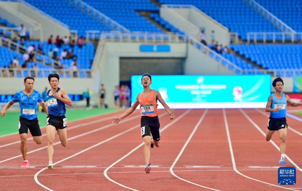 8月11日,浙江队选手范易成(右二)在冲线后庆祝。他晋级决赛。