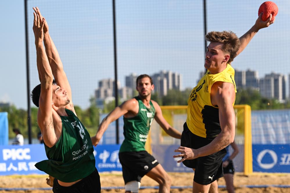新华社成都8月12日电(记者张武岳、许仕豪)成都世运会沙滩手球项目12日结束,德国队以大比分2:1逆转战胜葡萄牙队,夺得男子冠军。但德国女队却1:2不敌阿根廷女队,无缘卫冕。