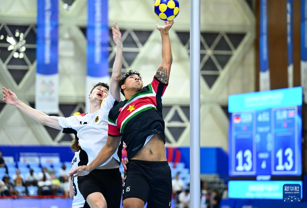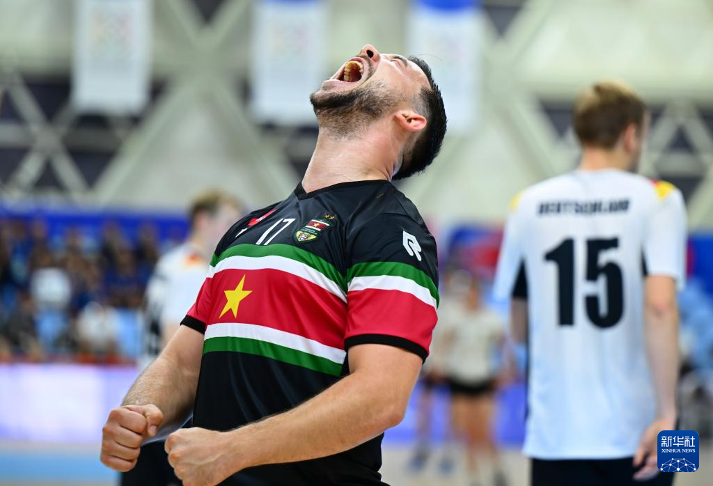 当日,在2025年成都世运会荷球混合团体赛第五名争夺赛中,苏里南队战胜德国队。
