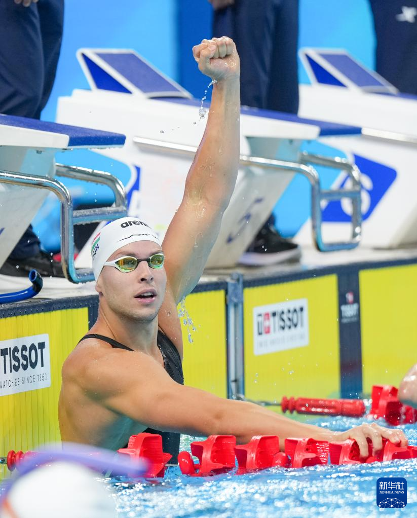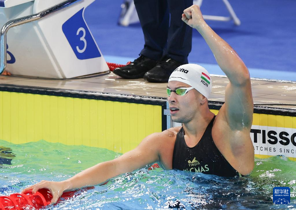 8月11日,匈牙利选手绍博在比赛后庆祝。他以17秒96的成绩夺冠并创造新的世界纪录。