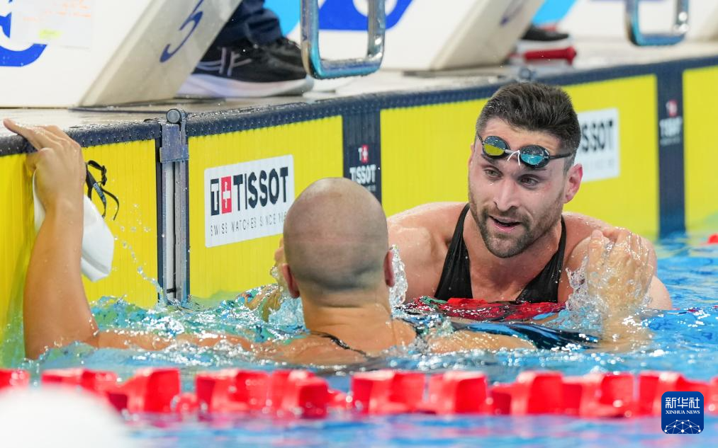 8月11日,意大利选手马可(右)在比赛后向匈牙利选手绍博致意。