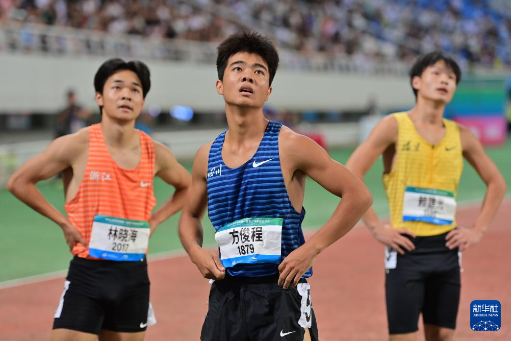 8月11日,四川队选手方俊程(中)在比赛中冲线。他获得冠军。