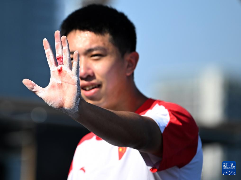 8月12日,中国选手富思达在比赛后展示出血的手掌,最终他获得第五名。
