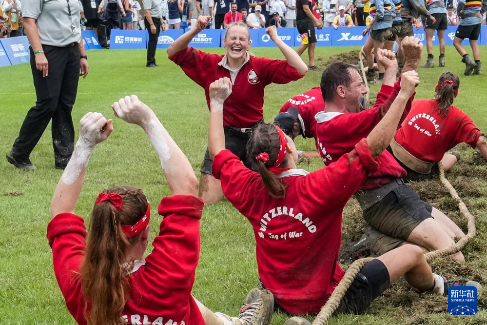 当日,2025年成都世运会混合室外拔河580公斤级比赛在东安湖体育公园中央广场举行。